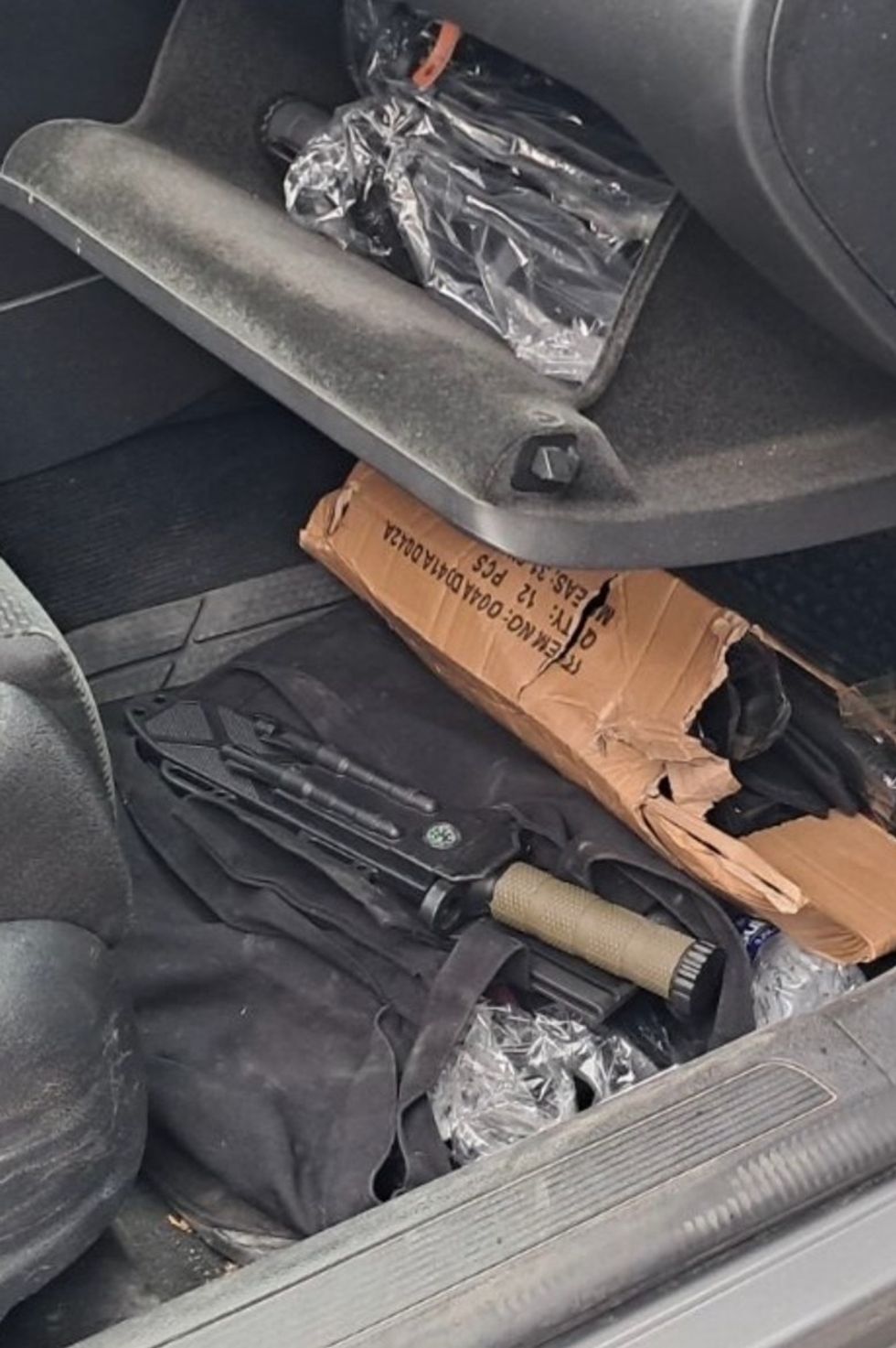 “...Njësitë patrulluese kufitare nga DRPK-Lindje (Stacioni Policor për Mbikëqyrje të Kufirit Kaçanik) në Han të Elezit kanë ndaluar një automjet të dyshuar me targa të Republikës së Maqedonisë së Veriut të drejtuar nga një shtetas i Maqedonisë së Veriut, i cili përkundër pohimit se nuk ka asgjë për të deklaruar tek zyrtarët doganorë, pas ndaljes në pikën e kontrollit, gjatë kontrollit të detajuar në bagazh janë gjetur një sasi prej gjithsej 3,780 copë – çorapësh të markave të mbrojtura tregtare si Nike dhe Adidas, si dhe në pjesën e përparme të automjetit (në sirtarin e pasagjerit) janë zbuluar edhe 47 thika gjahu me këllëfë për të cilat nuk është paraqitur asnjë dokumentacion shoqërues”, thuhet në njoftim.