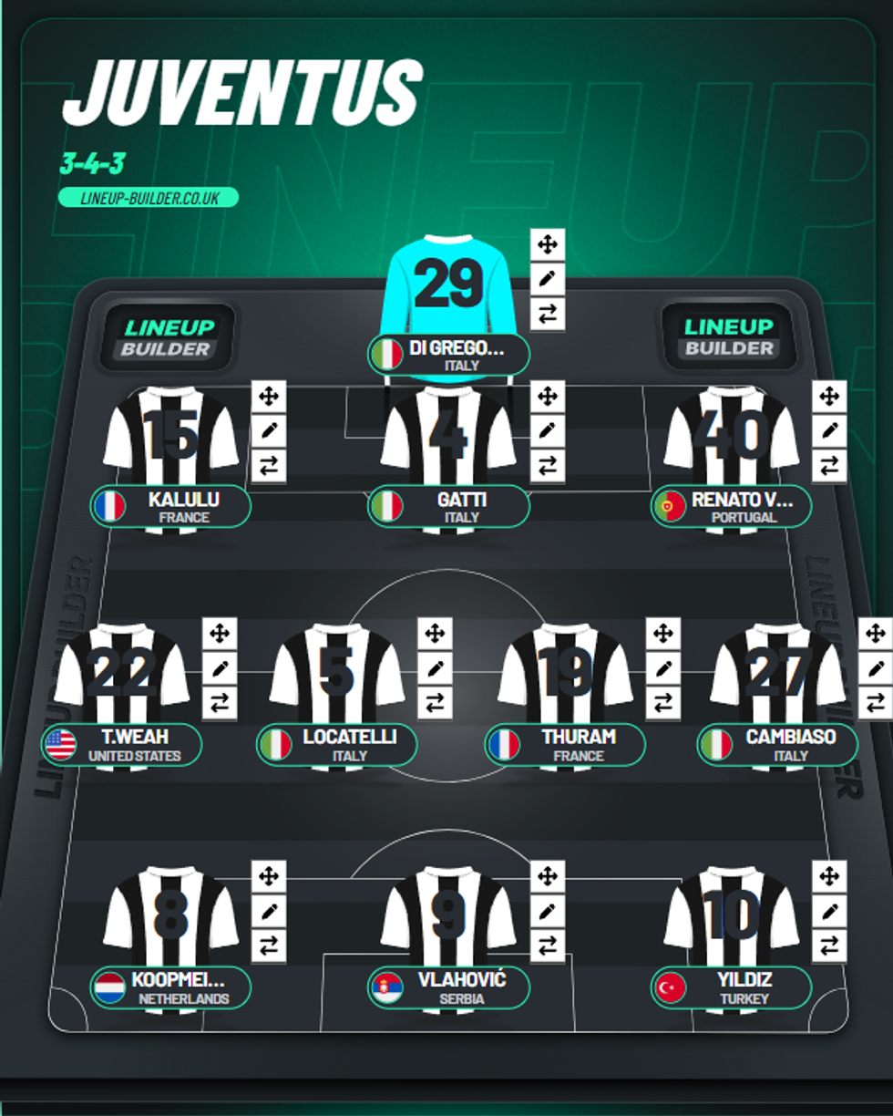 Andrea Cambiaso dhe Tim Weah pritet të luajnë si mbrojtës krahu, përkatësisht majtas dhe djathtas, ndërsa Manuel Locatelli dhe Khephren Thuram do të ofrojnë fizikun e nevojshëm në mes të parkut.