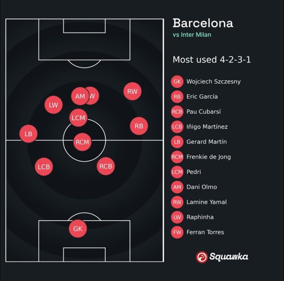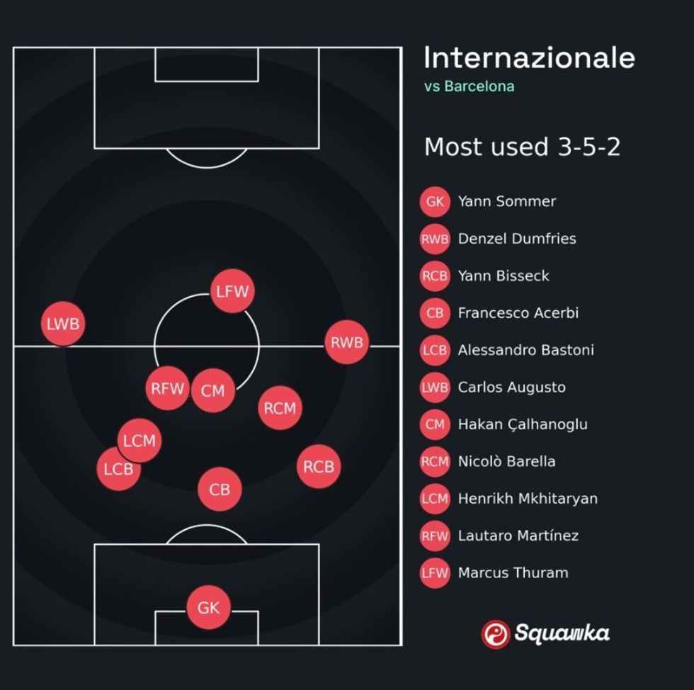 Interi ishte absolutisht i shkëlqyer në pjesën e parë, duke shënuar dy gola nga 1.66 xG ndërsa kufizoi Barcelonën në vetëm 0.58 xG nga gjashtë gjuajtje. Inzaghi ndryshoi strukturën e presionit duke u futur në këtë ndeshje, duke kërkuar të detyrojë Barcelonën të luajë sa më poshtë në krah të majtë, duke kufizuar prekjet dhe ndikimin e Lamine Yamal në lojë.