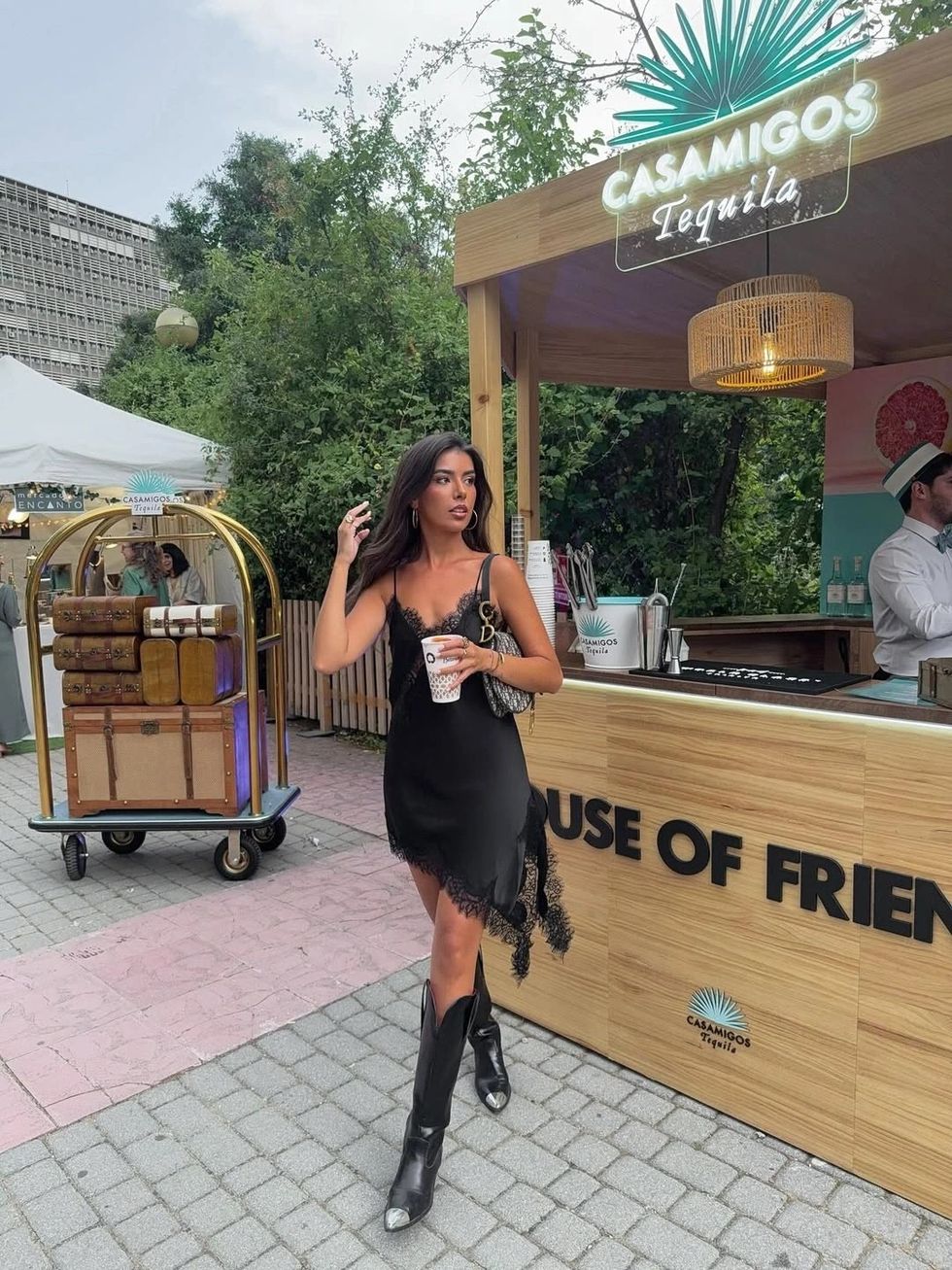 Shpirti festiv jeton edhe këtë vit dhe çizmet kauboj kombinohen në mënyrë të shkëlqyer me delikatesën e këtij fustani. Me një kapele apo një çantë me frëngji, dukja boho është e plotë.