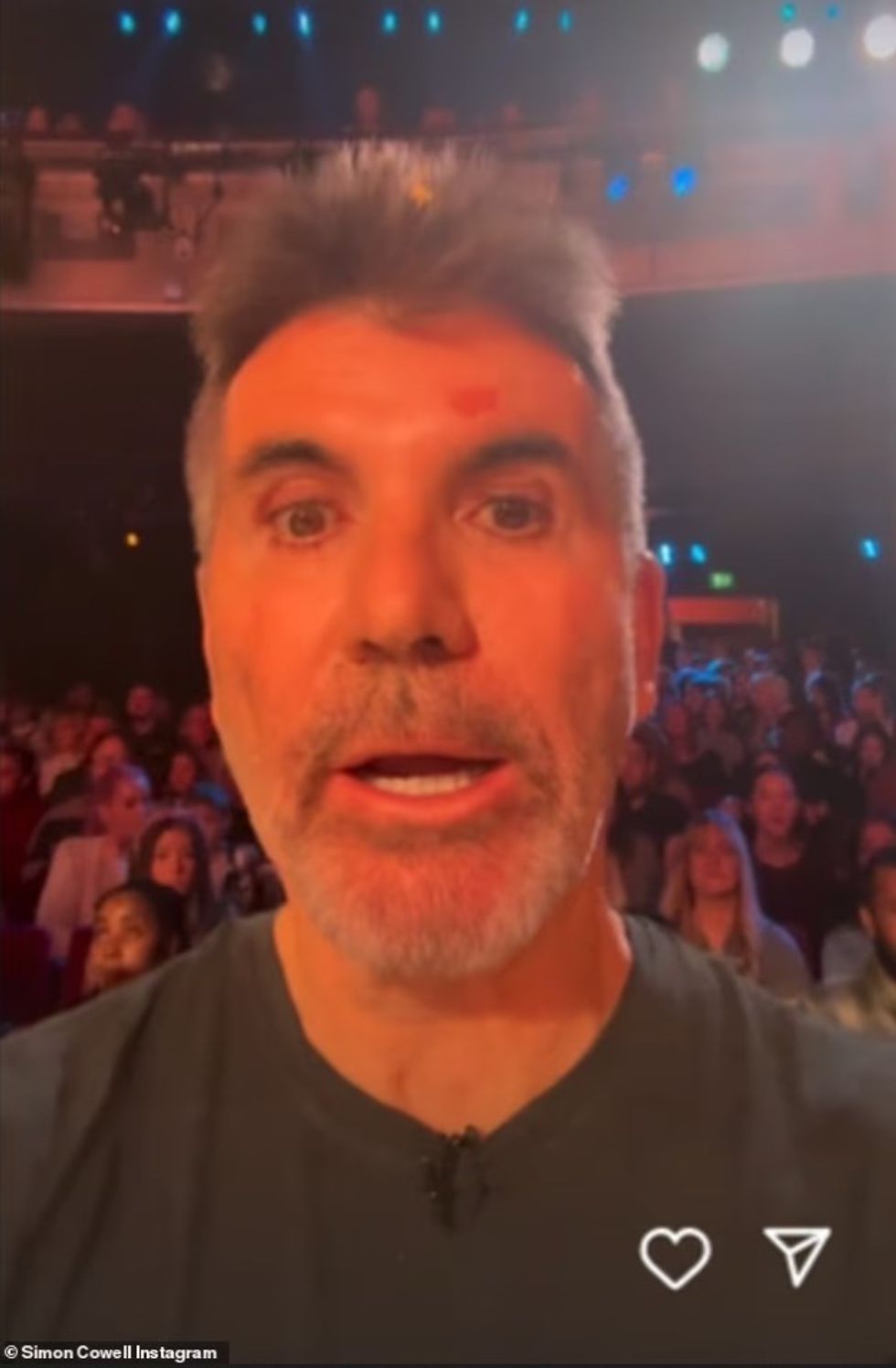 Simon u rikthye në audicionet e shfaqjes të shtunën në teatrin Hippodrome në Birmingham, me një shenjë të kuqe në ballë që dukej e dhimbshme.
