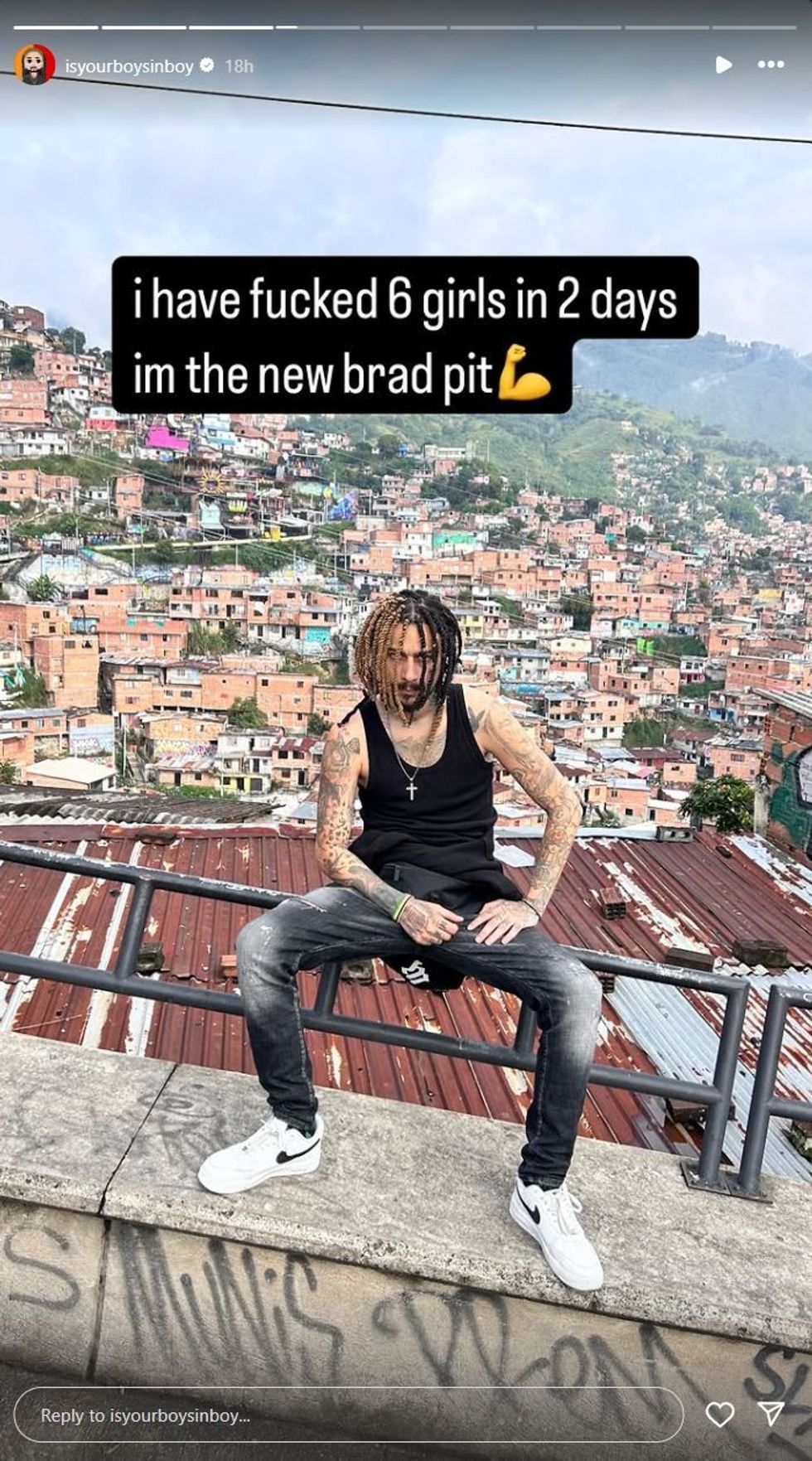 Në një sërë storiesh të publikuara në profilin e tij, reperi ka ndarë imazhe të vajzave të panjohura – të fotografuara nga pas në ambiente publike – duke pretenduar se ka pasur marrëdhënie seksuale me disa prej tyre brenda një periudhe të shkurtër. Fillimisht, ai deklaroi se ka qenë me gjashtë, më pas shtatë, dhe në fund tetë vajza, të gjitha brenda vetëm dy ditëve.