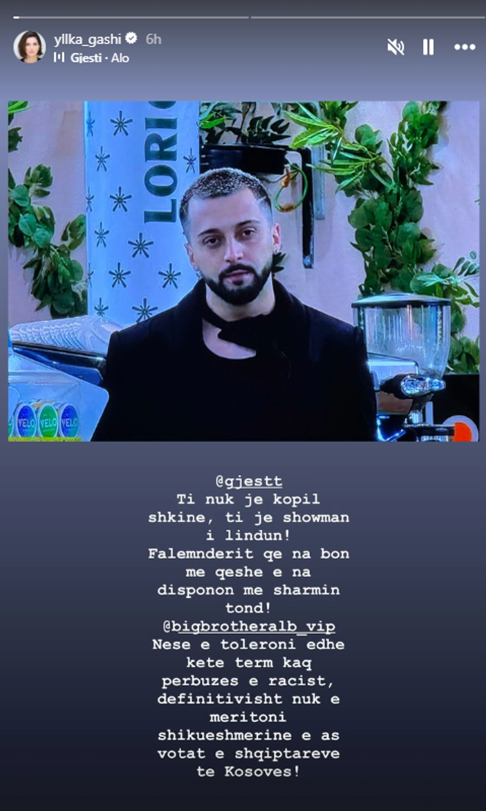 Tutje shtoi: “Big Brother VIP Albania nëse e toleroni edhe këtë term kaq përbuzës e racist, definitivisht nuk e meritoni shikueshmërinë e as votat e shqiptarëve të Kosovës”.