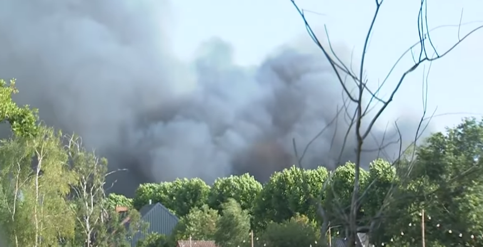 Pamjet e publikuara më 16 korrik nga televizioni belg VRT NWS tregojnë skenën duke u shkatërruar nga flakët, ndërsa re të mëdha tymi ngrihen në ajër.
