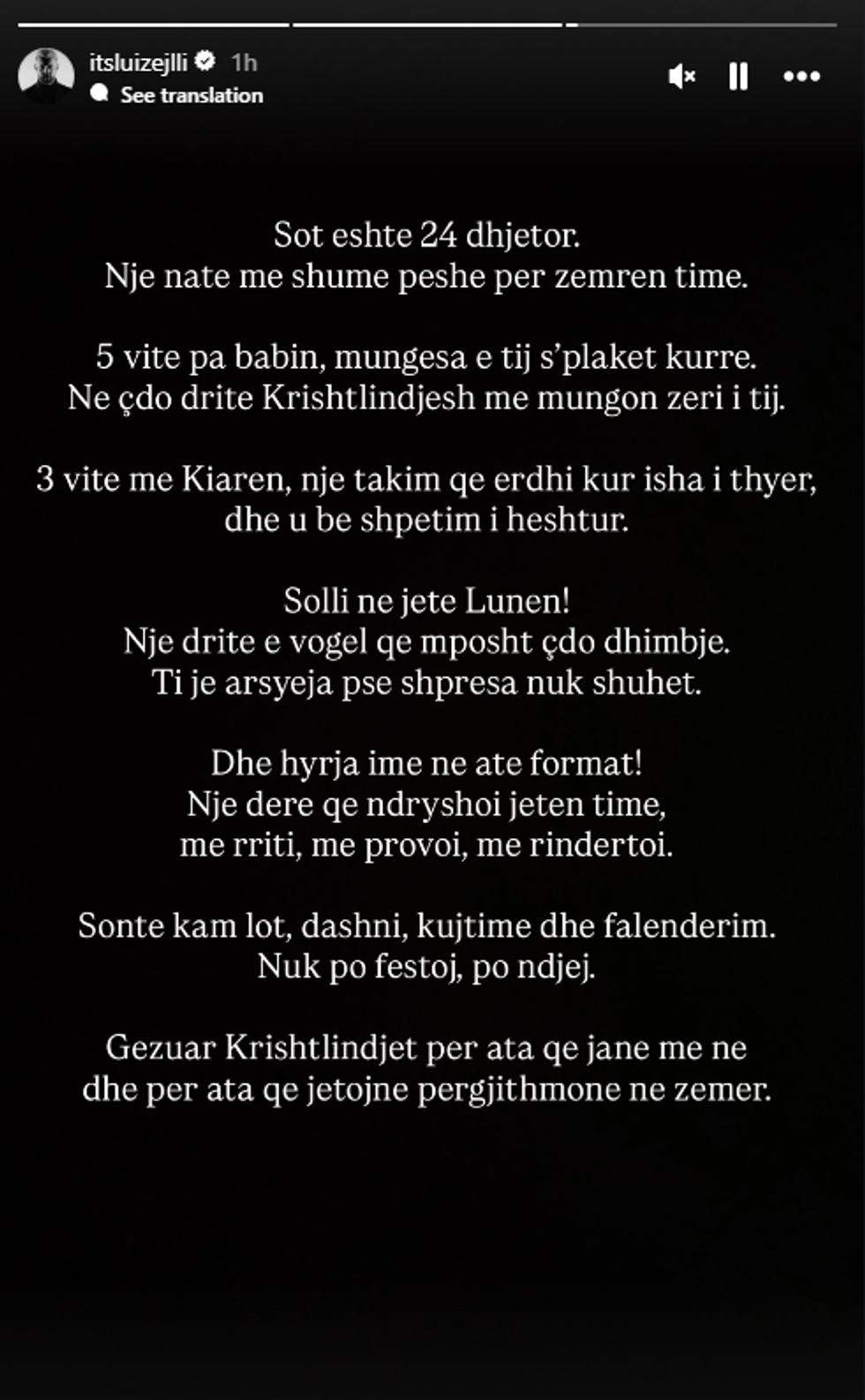 "Sot është 24 dhjetor.Një natë me shumë peshë për zemrën time.
