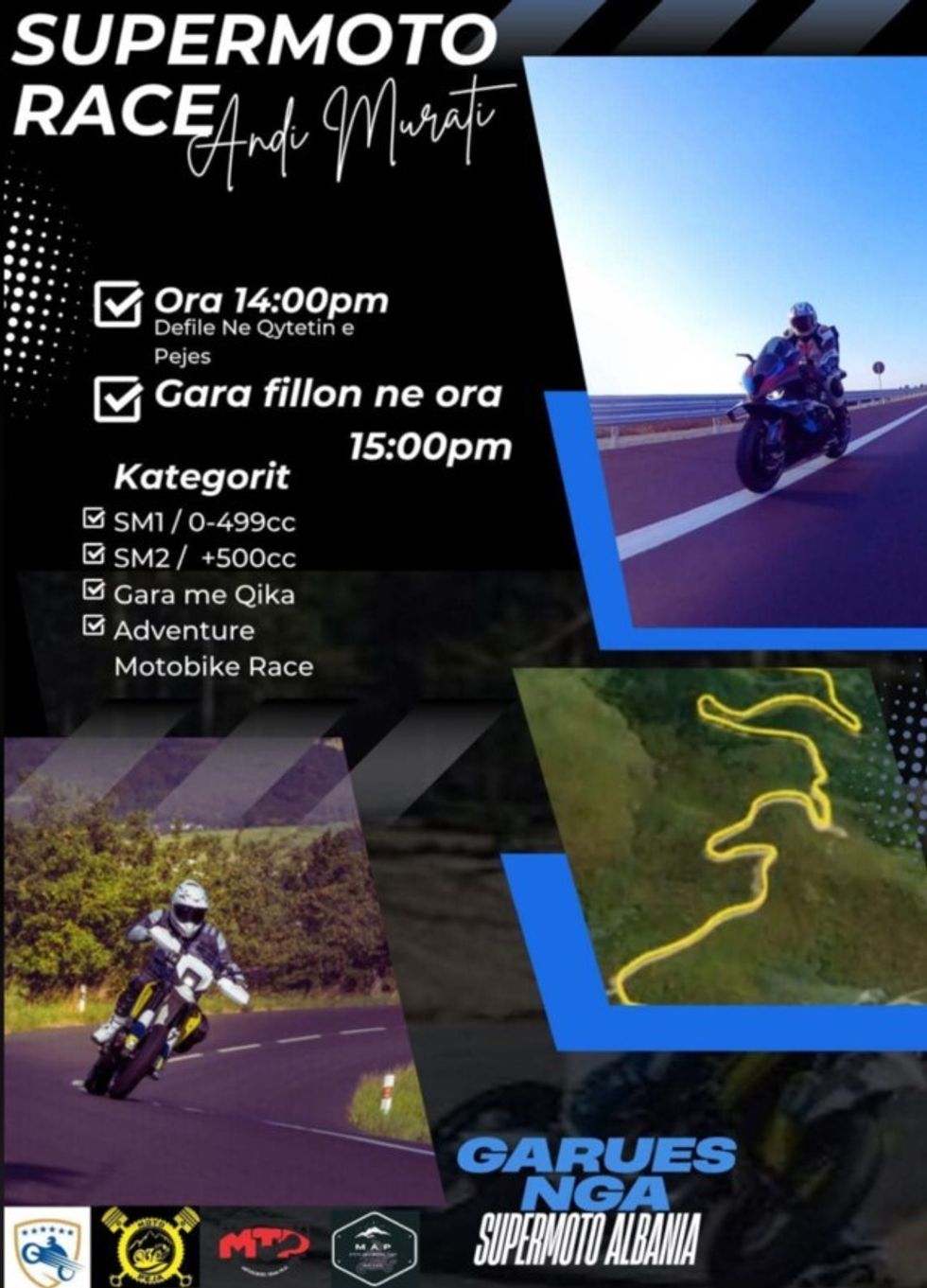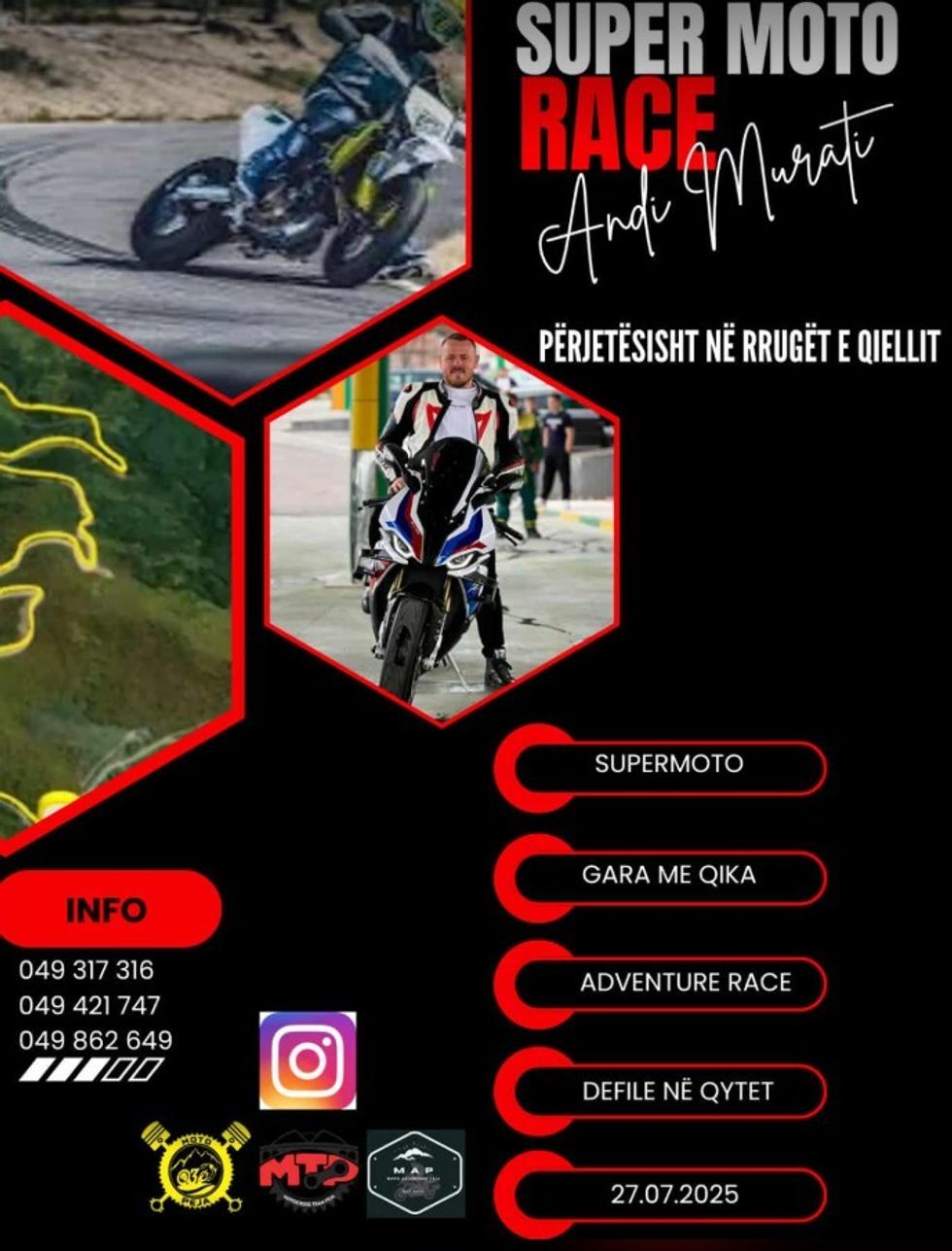 Më 27 korrik, qyteti i Pejës do të shndërrohet në epiqendrën e adrenalinës dhe pasionit për motoçiklizmin, me organizimin e garës madhështore “Super Moto Race” në nderim të Andi Muratit. Andi Murati ishte një ndër figurat më të dashura të komunitetit motorristik dhe kjo ngjarje do mbahet për nder të tij me moton “Përjetësisht në rrugët e qiellit”. Programi i ngjarjes: Ora 14:00 – fillon defileu në qytetin e Pejës, një paradë simbolike që sjell në vëmendje madhështinë e motoçiklizmit dhe nderimin për figurën e Andit.