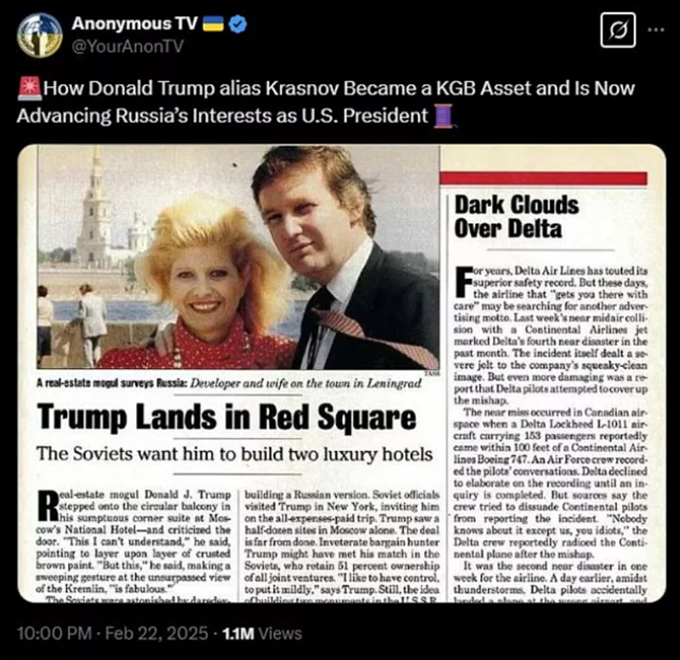 Një postim në X, i cili ka grumbulluar më shumë se 1 milion shikime, i referohet Trump si "Krasnov" dhe e cilëson presidentin e SHBA-së një aset rus.
