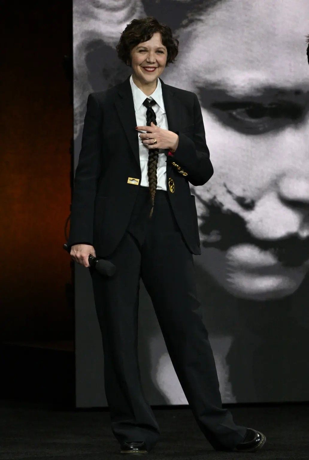 Një tjetër element i veçantë në dukjen e Gyllenhaal, ishte kapësja metalike në xhaketë, por sërish karvata në formë gërsheti “rrëmbeu” vëmendjen.