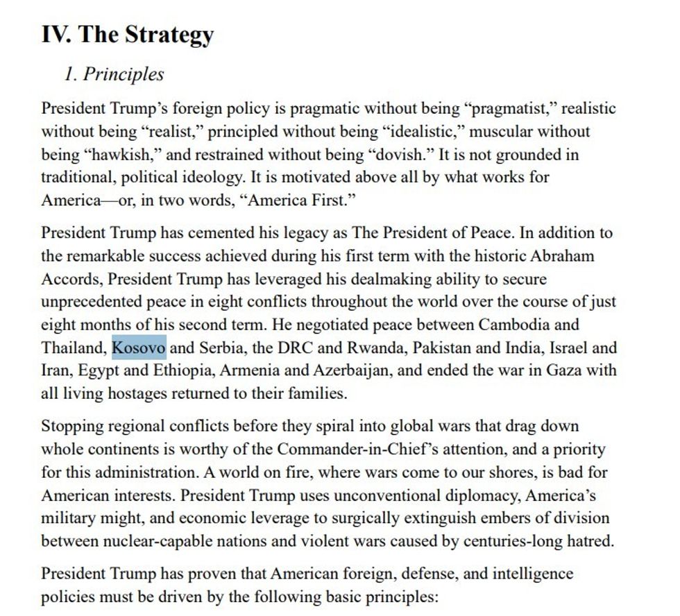 Edhe pse dokumenti nuk jep detaje mbi marrëveshjen e supozuar Kosovë-Serbi, përfshirja e saj në strategji tregon se administrata Trump e sheh këtë si një sukses diplomatik, që synon të forcojë pozicionin politik ndërkombëtar.