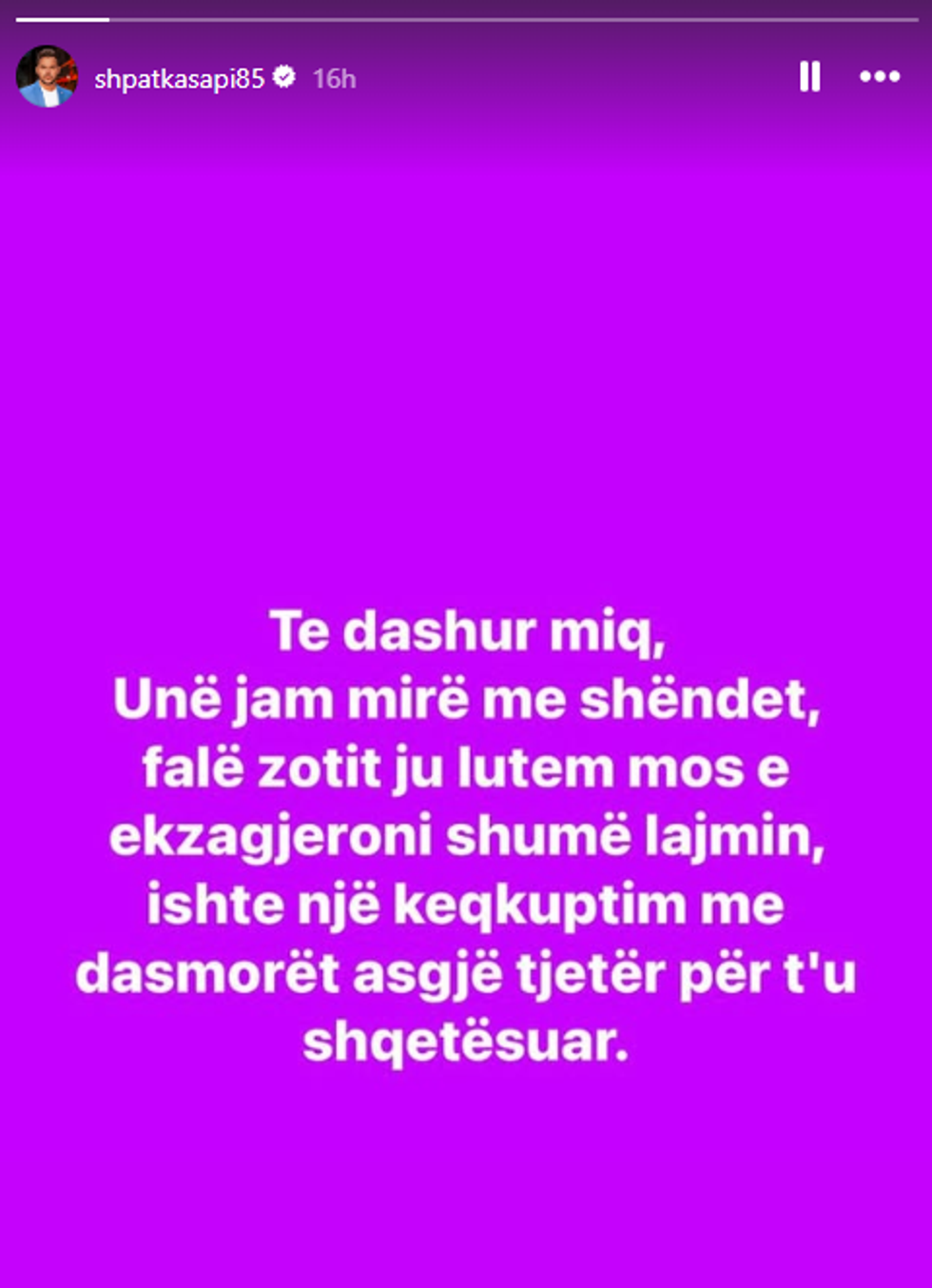 I njëjti tha se ishte një keqkuptim me dasmorët dhe se është në gjendje të mirë shëndetësore.