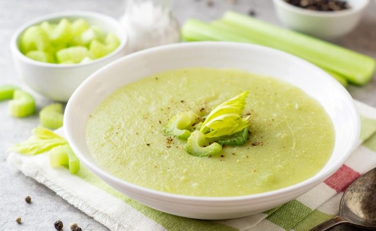 Kur të fërgohen, lini të ftohen, pastaj shtoni 1,5 l ujë dhe të gjitha përzieni me mikserin që ka formën e shkopit.