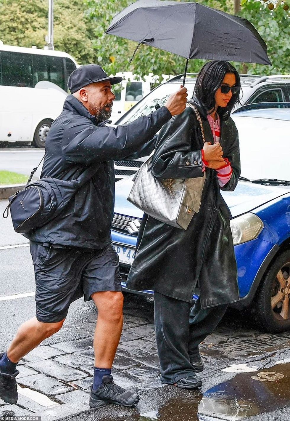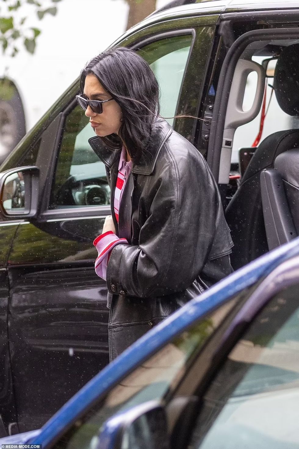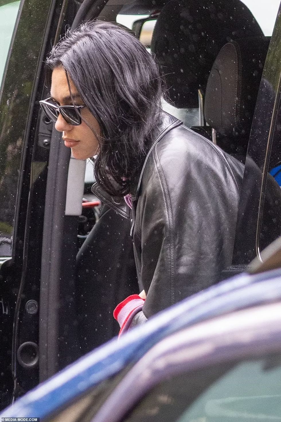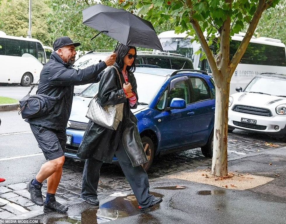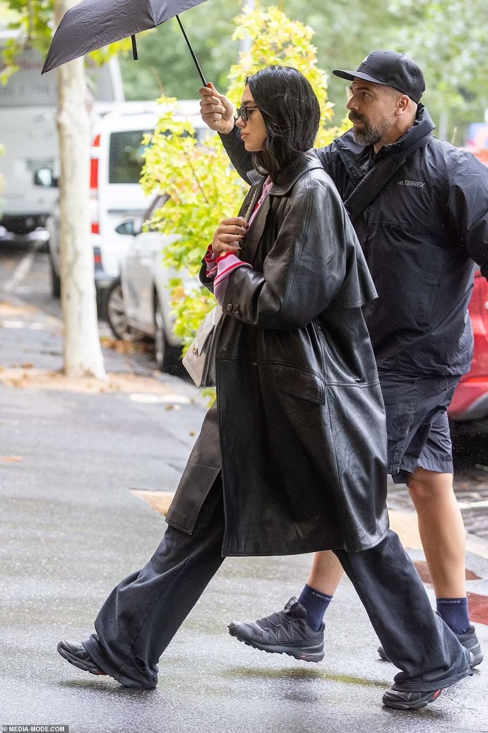 Me syze dhe xhaketë, Dua Lipa përpiqet që të mos vihet re rrugëve ndërsa përballet me rrebeshin e shiut në Melburn