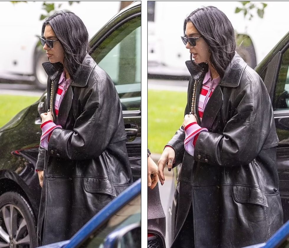 Superstarja e pop-it kishte zgjedhur një pamje të errët me një mantël të gjatë lëkure të zezë që përfundonte deri te gishti i gjunjëve.