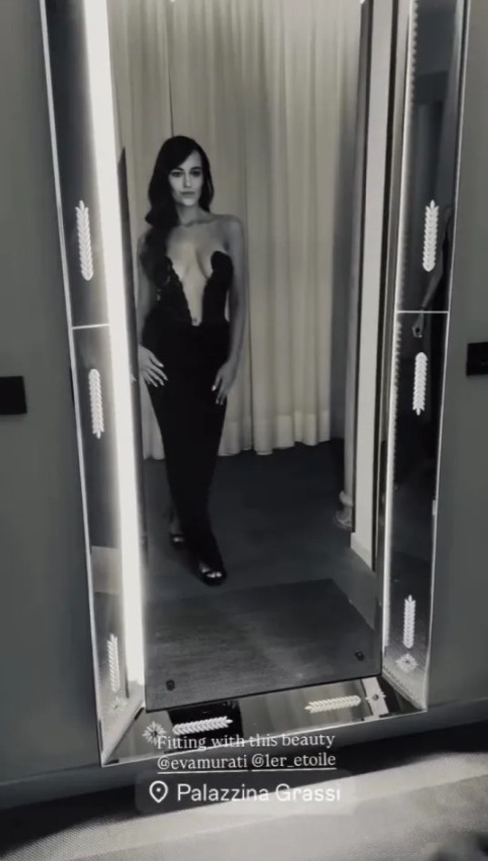 Në rrjetet sociale, Eva ndau momente nga ky event, duke postuar një video ku shihej duke pozuar përpara pasqyrës përpara se të merrte pjesë në afterparty në Palazzina Grassi.