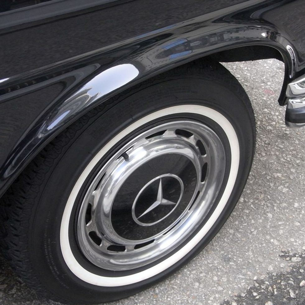Gomat radiale me vija të holla të bardha dhe një vijë ari, si ato të prodhuara nga kompania Vogue Tyre, mbetën të njohura në automjetet luksoze.