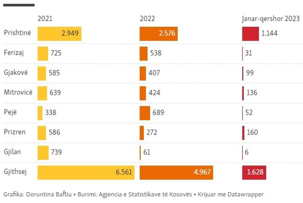 Çmimi për blerje të banesave, ndërkaq, nis nga 1.000 euro për metër katror deri në mbi 2.200 euro. Më së shtrenjti, ato janë në Prishtinë dhe në Prizren.
