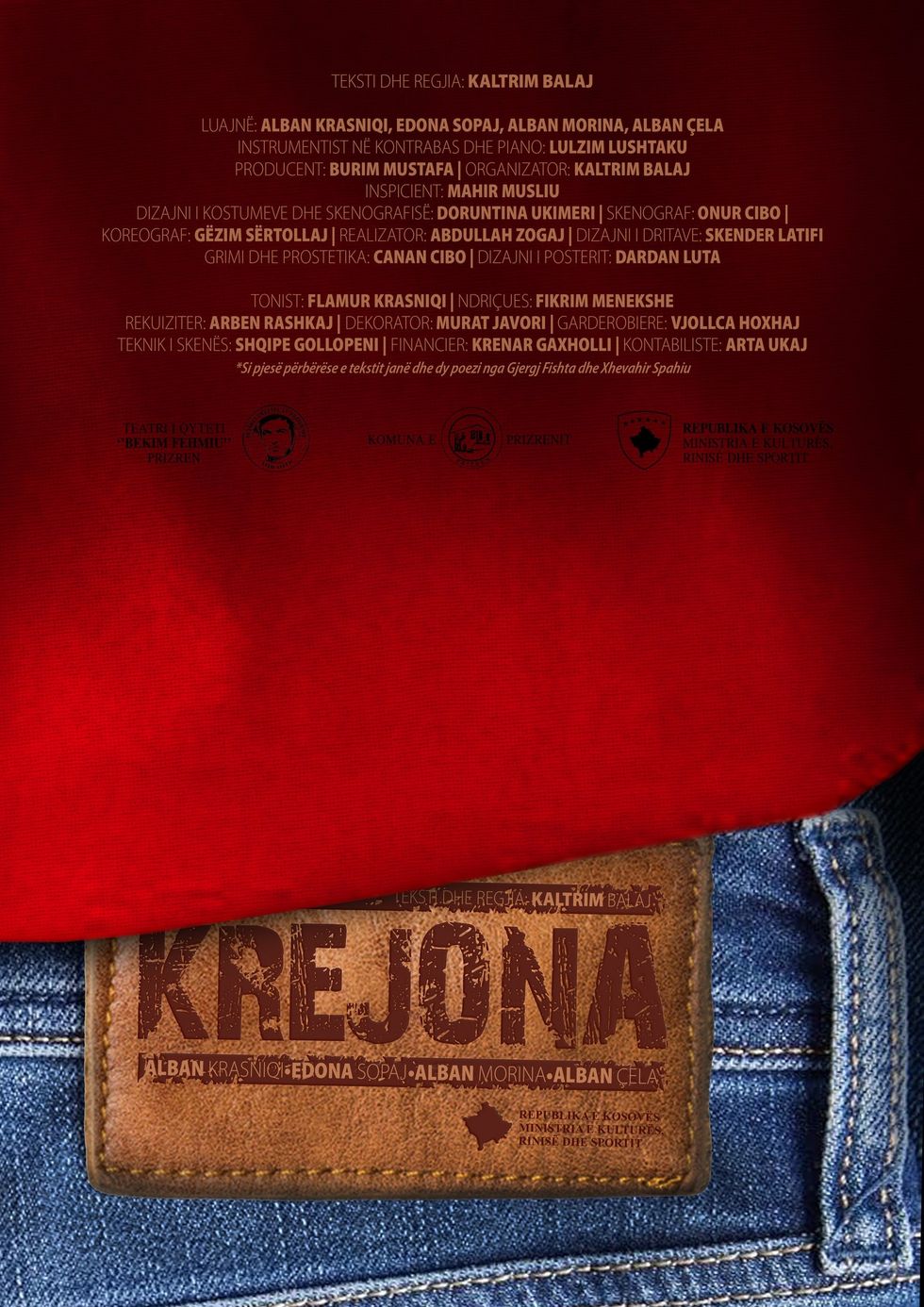 Realizimi i projektit laborator “Krejona” në Teatrin e qytetit “Bekim Fehmiu” ka filluar në muajin tetor të vitit të shkuar. Premiera shfaqet me 22 dhe 23 janar 2025, nga ora 19:00.