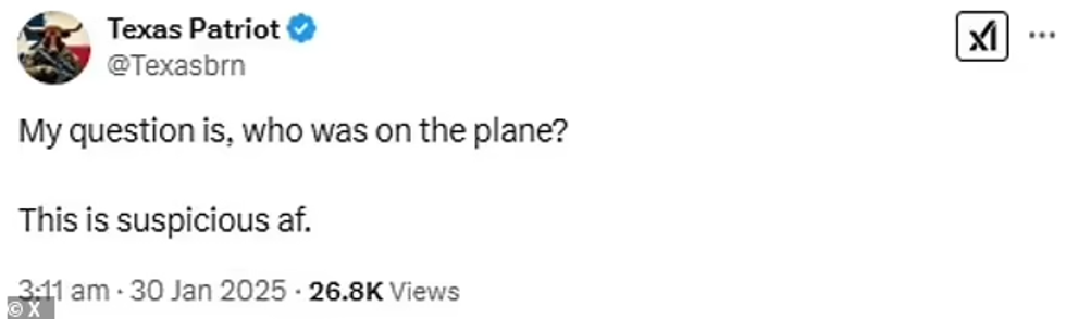 Dhjetëra përdorues të mediave sociale kanë bërë thirrje për më shumë detaje në lidhje me ata që ishin në bordin e aeroplanit, duke pretenduar në mënyrë të pabazë se kishte 'agjendë më të madhe në lojë'.