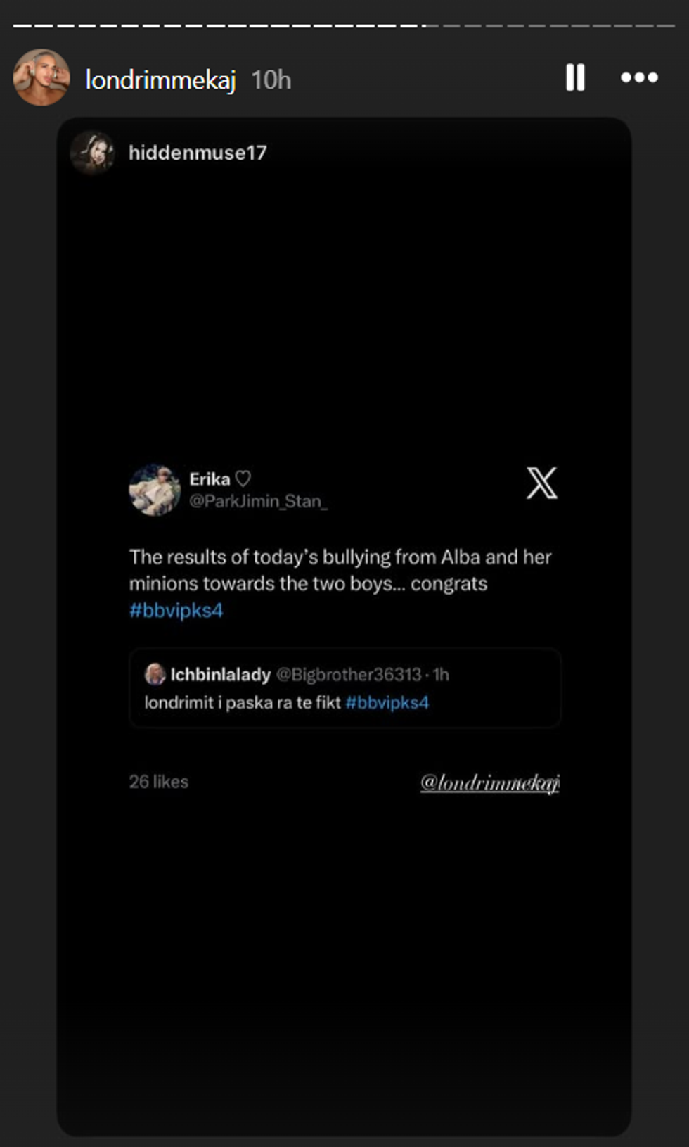 Edhe faqja zyrtare e Londrimit në Instagram, që menaxhohet nga familja, shpërndau mesazhet për këtë.