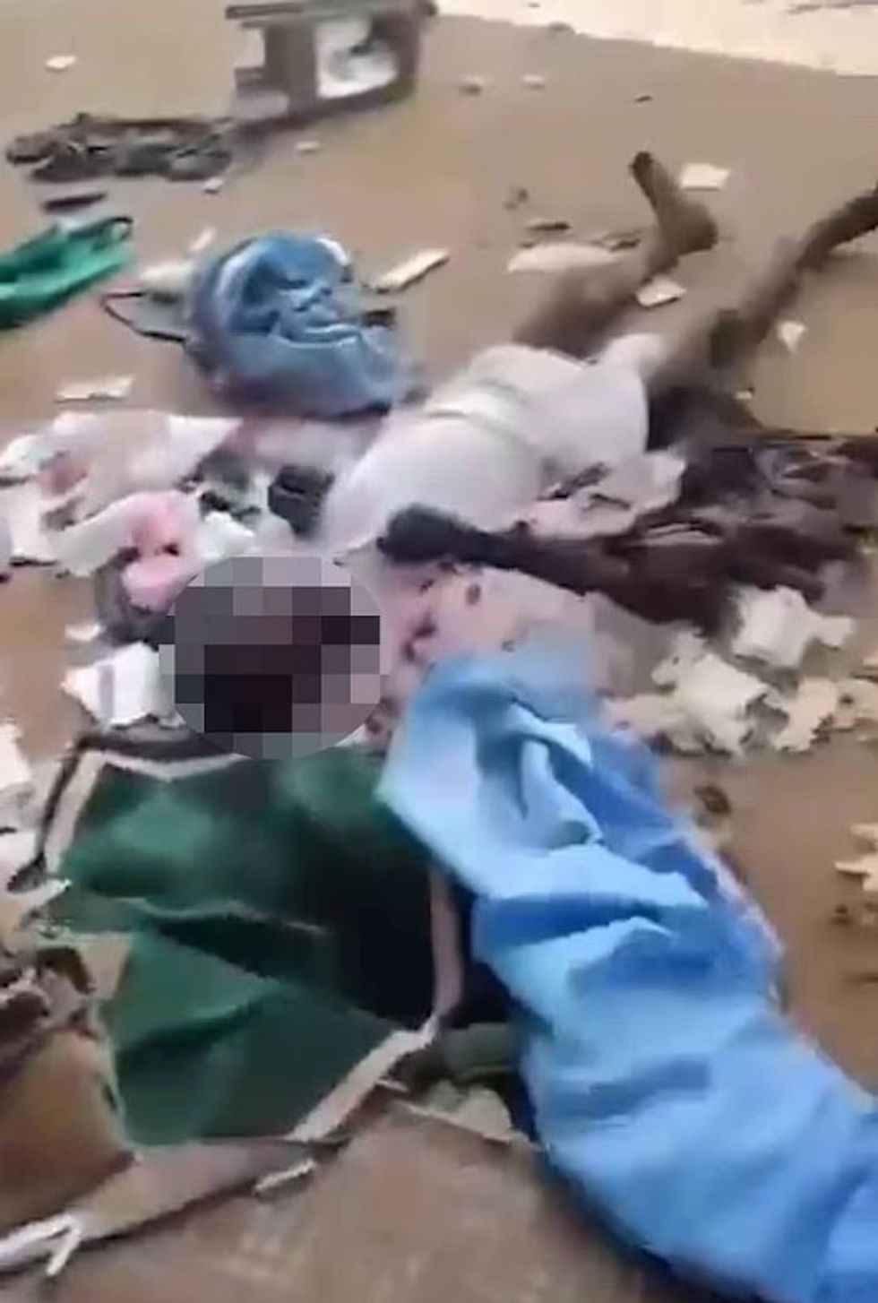 Pamjet që supozohet se kapin pasojat e masakrës së spitalit treguan trupa të shpërndarë në dysheme midis rrënojave dhe pajisjeve të thyera.