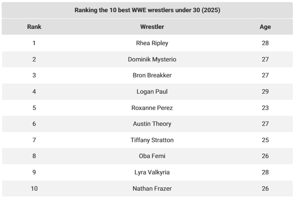 Disa kanë arritur tashmë po aq sa çdokush në kompani, ndërsa të tjerët po fillojnë udhëtimin e tyre drejt superyjeve. Kjo listë do të shpalosë 10 mundësit më të mirë në WWE nën moshën 30-vjeçare.