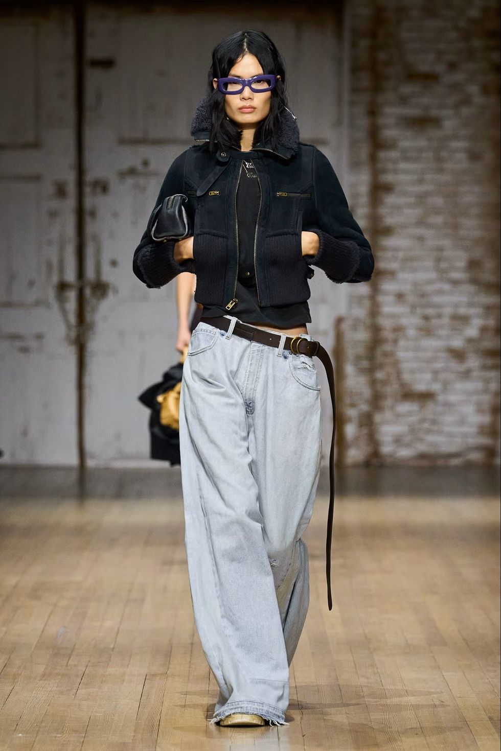 Zbehja e fortë dhe efektet “të konsumuar” janë kthyer në trend surprizë. Acne Studios në Paris prezantoi xhinse që dukeshin sikur ishin mbuluar nga balta, ndërsa Ottolinger eksperimentoi me prerje të shkatërruara dhe bel abstrakt. Për një stil “off-duty”, Moussy ofron versione shumë të kërkuara, ndërsa Balenciaga sjell larje të zbehura me silueta të lira.