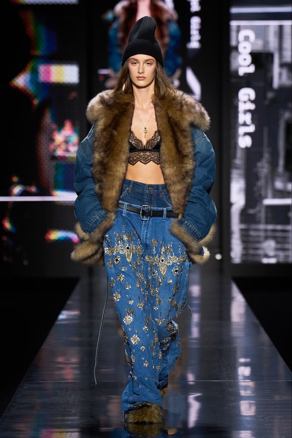 Bling është në qendër këtë vjeshtë. Modele të stolisura me gurë që ndjekin belin apo zbukurime që shkëlqejnë në çdo hap janë trend i pandalshëm. Në Paris, Coperni prezantoi xhinse me qëndisje të guximshme, ndërsa në Milano, Etro solli modele të pasura me detaje artistike.