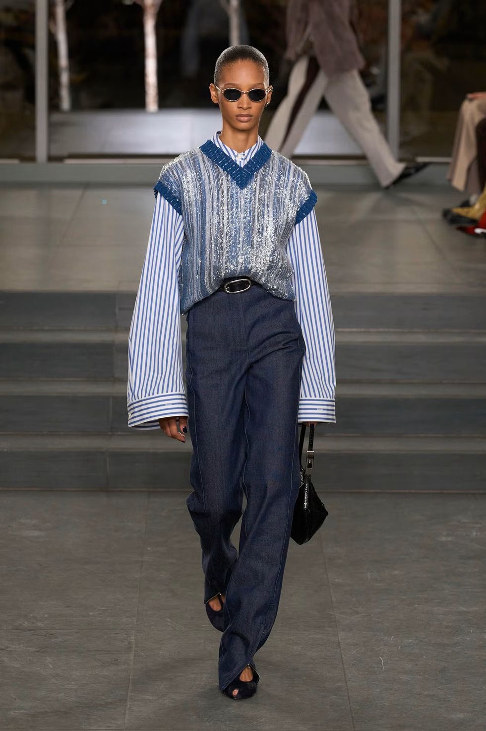 Pavarësisht risive, sfilatat treguan se prerjet e përjetshme nuk shkojnë askund. Tory Burch në Nju Jork qëndroi besnike tek modelet me bel të lartë dhe frymë vintage, S.S. Daley në Londër solli nuancën klasike blu, ndërsa Marine Serre në Paris riktheu larjen ultra-blue me prerje të lartë.