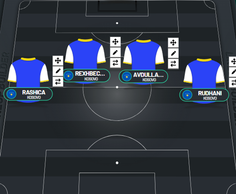 Në rreshtimin e parë 4-2-3-1, i cili është i preferuari të Fodas, Avdullahu do të paraqitej në dyshen e mesfushës së bashku me Elvis Rexhbeçajn.