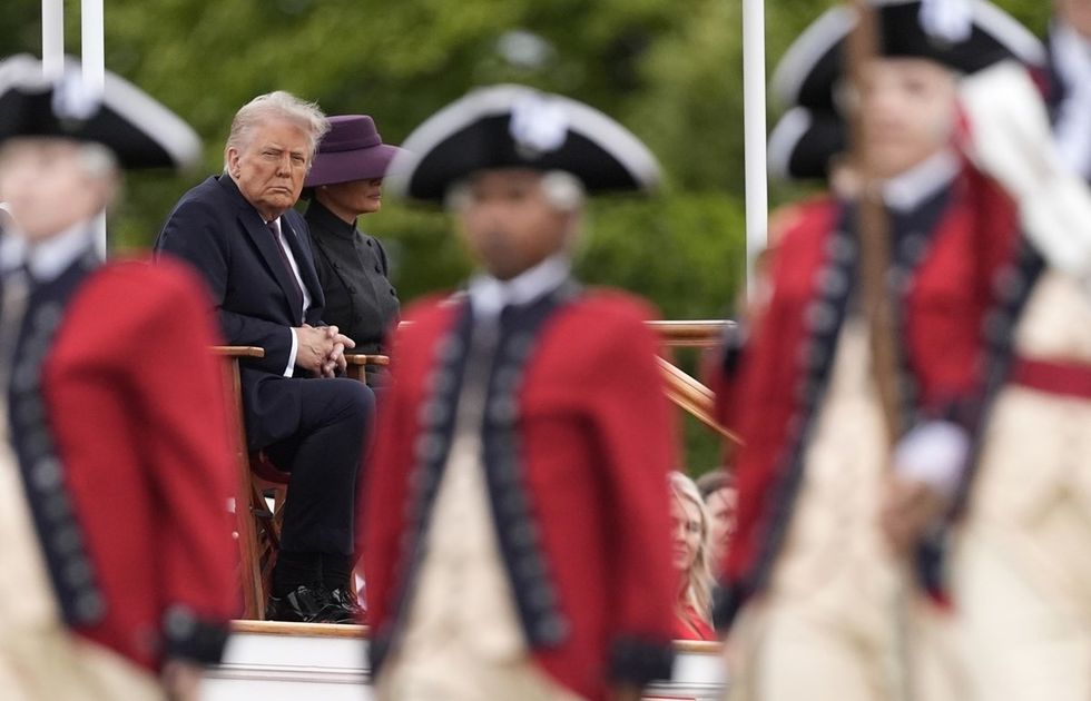 Trump u kritikua ashpër sepse shkelte protokollin mbretëror gjatë një inspektimi ushtarak. Pasi u pritën nga Princi dhe Princesha e Wales-it, Trump e Melania u takuan me Mbretin dhe Mbretëreshën.