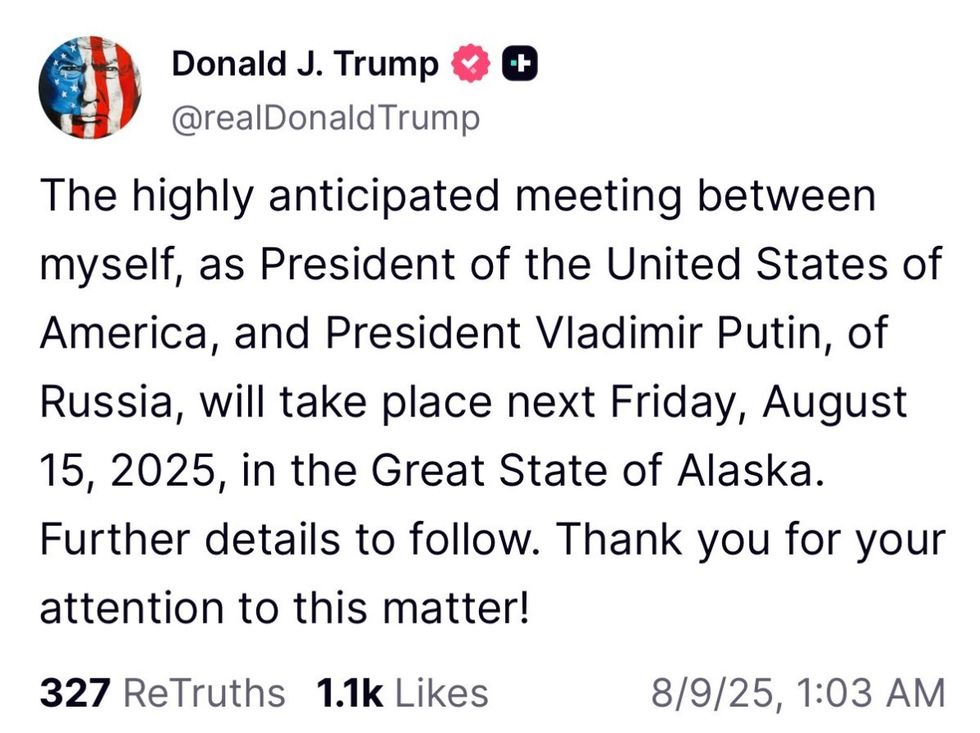 Trump tha se planifikon të takohet me presidentin rus të premten e ardhshme (15 gusht) në Alaskë. Vendndodhjen e bëri të ditur në një postim të shkurtër në platformën Truth Social.