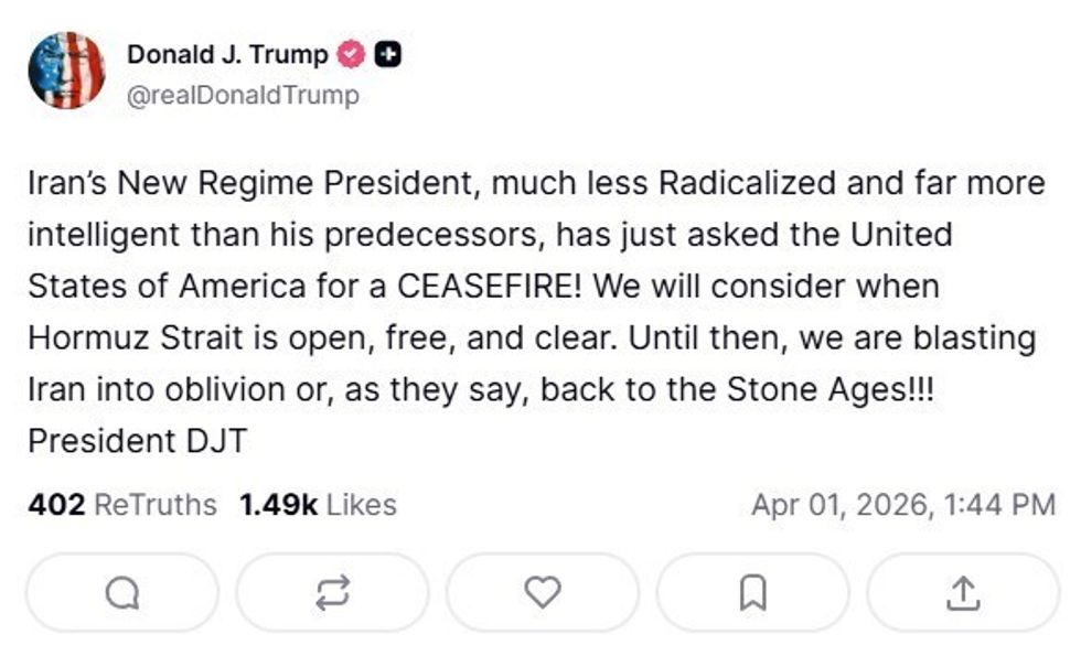 Megjithatë, SHBA-të do ta injorojnë kërkesën e pretenduar për armëpushim dhe do të vazhdojnë ta "shkatërrojnë Iranin" derisa ngushtica të jetë "e hapur, e lirë dhe e pastër", tha Trump.