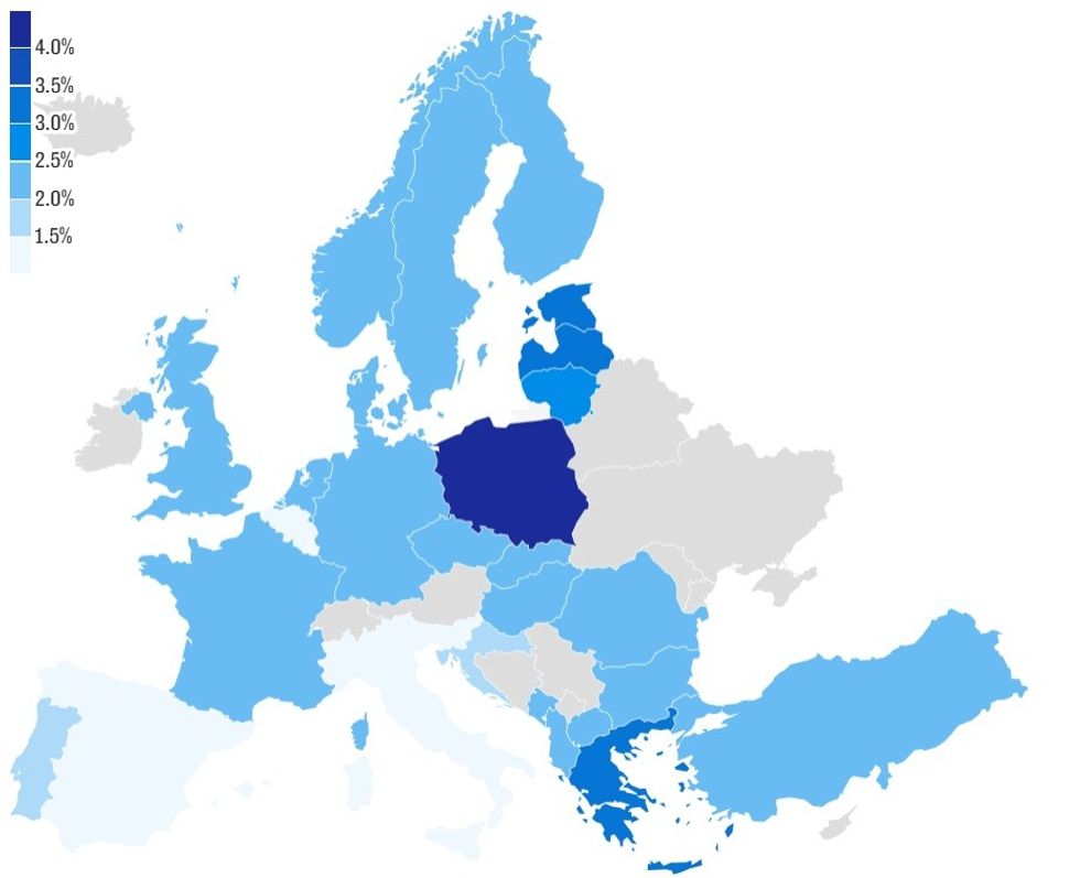 Shtetet baltike dhe Polonia po mbështeten tashmë mbi arritjet e tyre të qëndrueshme, duke premtuar rritje të ndjeshme të mëtejshme në vitet që vijnë. Polonia do të shpenzojë 4.7 për qind të PBB-së për mbrojtje këtë vit, ndërsa Estonia është zotuar të shpenzojë 5.4 për qind deri në vitin 2029. Lituania do të shpenzojë 5-6 për qind për mbrojtje nga viti 2026 deri në 2030, dhe Letonia do të arrijë në pesë për qind deri në vitin 2026.