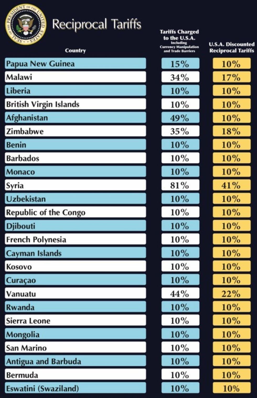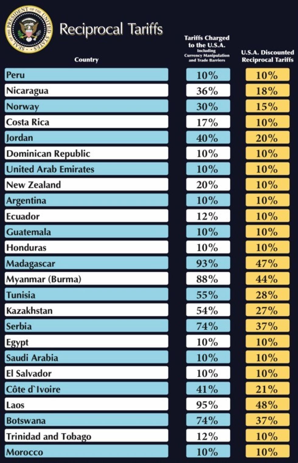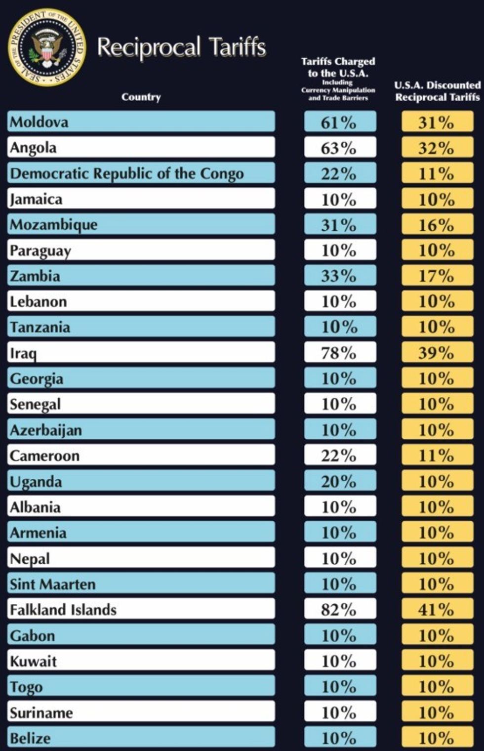 Në listën e shteteve të prekura nga tarifat e reja figuron edhe Kosova, e cila do të përballet me një tarifë prej 10 për qind. Me të njëjtën tarifë është 'ndëshkuar' edhe Shqipëria dhe Mali i Zi.