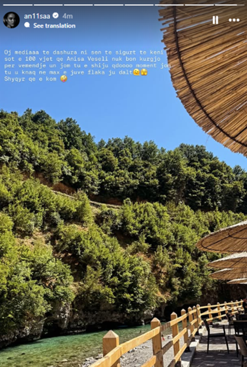Në një postim të fundit ajo shkruan: “Oj media të dashura, një gjë është e sigurt: të keni sot e 100 vjet që Anisa Veseli nuk bën asgjë për vëmendje. Unë jam duke e shijuar çdo moment, jam duke u kënaqur në maksimum, e juve flaka ju daltë”.
