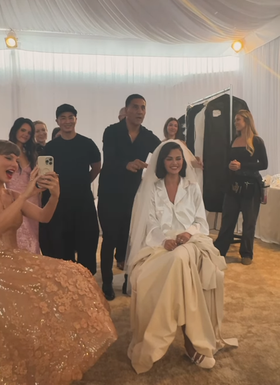 Klipi, i xhiruar nga Taylor Swift, tregon Selenan të ulur para një pasqyre ndërsa velloja e saj po rregullohet.