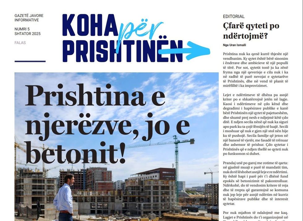 Uran Ismaili me numrin e pestë të gazetës javore: Zgjidhjet për betonin dhe pesë lagjet e Prishtinës