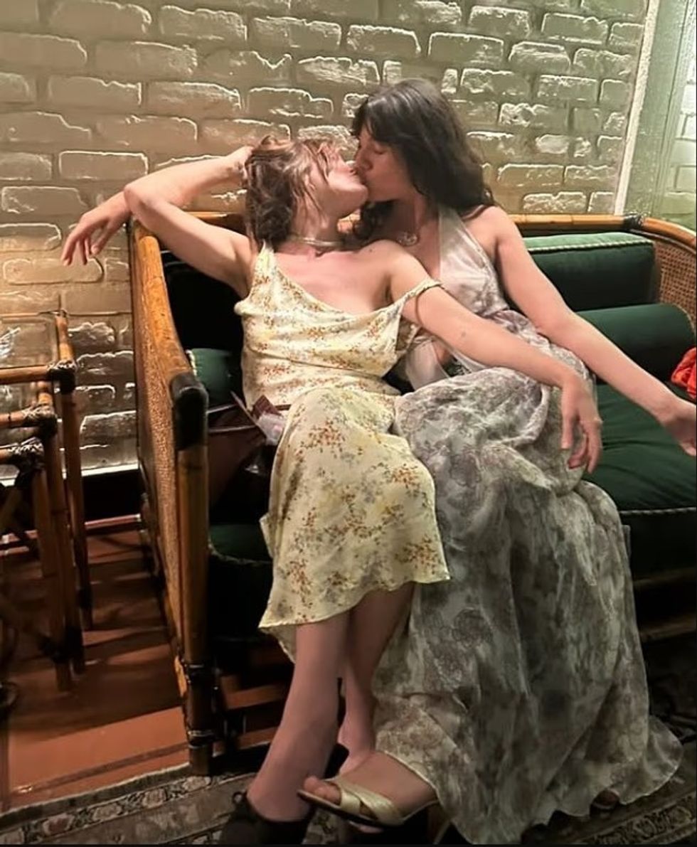 Në dy fotografi, ajo shihet duke u puthur me vajza – njëra prej tyre identifikohet si Kaiman Kazazian.