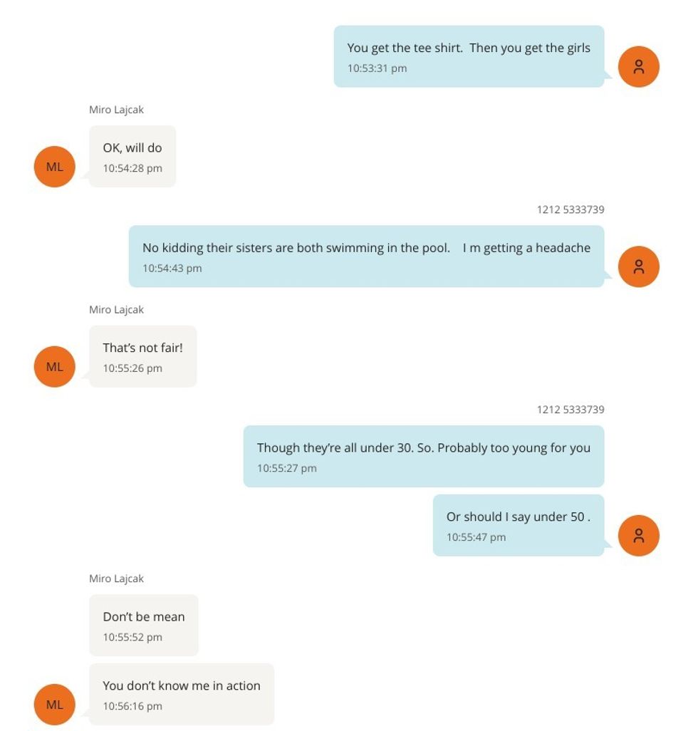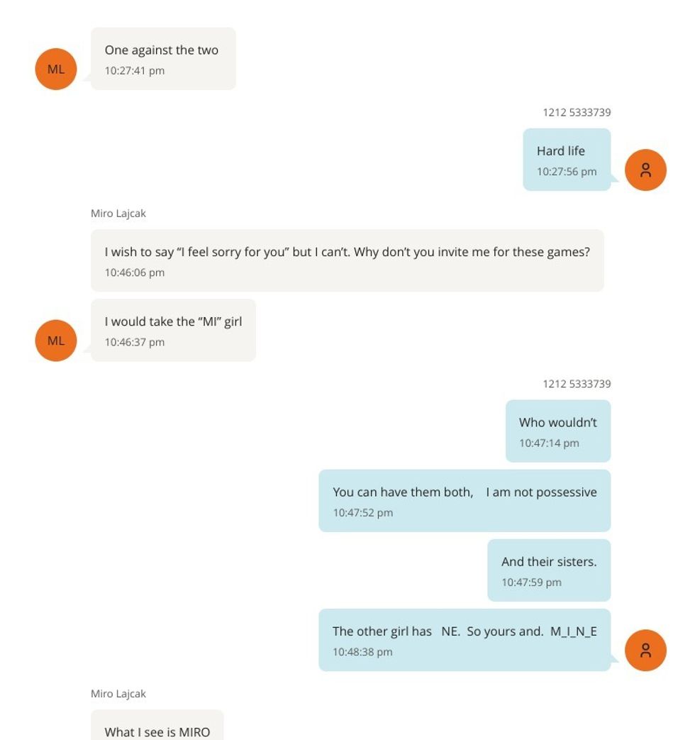 Në një tjetër mesazh, Lajçak i shkruan Epsteinit se nuk kishte asnjë vajzë me vete në atë moment. Epstein i përgjigjet se ishte me dy vajza, dhe kjo gjë Lajçakut i duket “padrejtësi”.