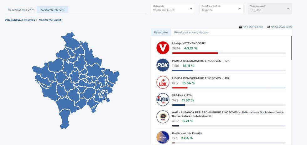 Në ueb-faqen e KQZ, ku përditësimi i fundit është i orës 23:02 të së martës bëhet e ditur se tashmë janë numëruar 78.57 për qind e fletëvotimeve.