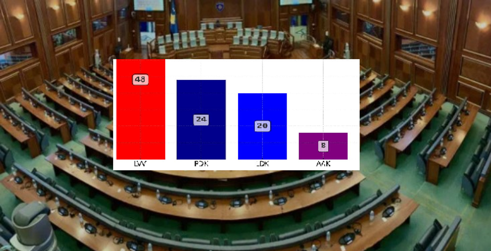 Deri tani, prin Lëvizja Vetëvendosje me 40.21 për qind, Partia Demokratike e Kosovës me 18.11 për qind, Lidhja Demokratike e Kosovës me 13.54 për qind, Lista Serbe me 11.37 për qind, Aleanca për Ardhmërinë e Kosovës me 6.21 për qind dhe Koalicioni për Familje me 2.64 për qind.