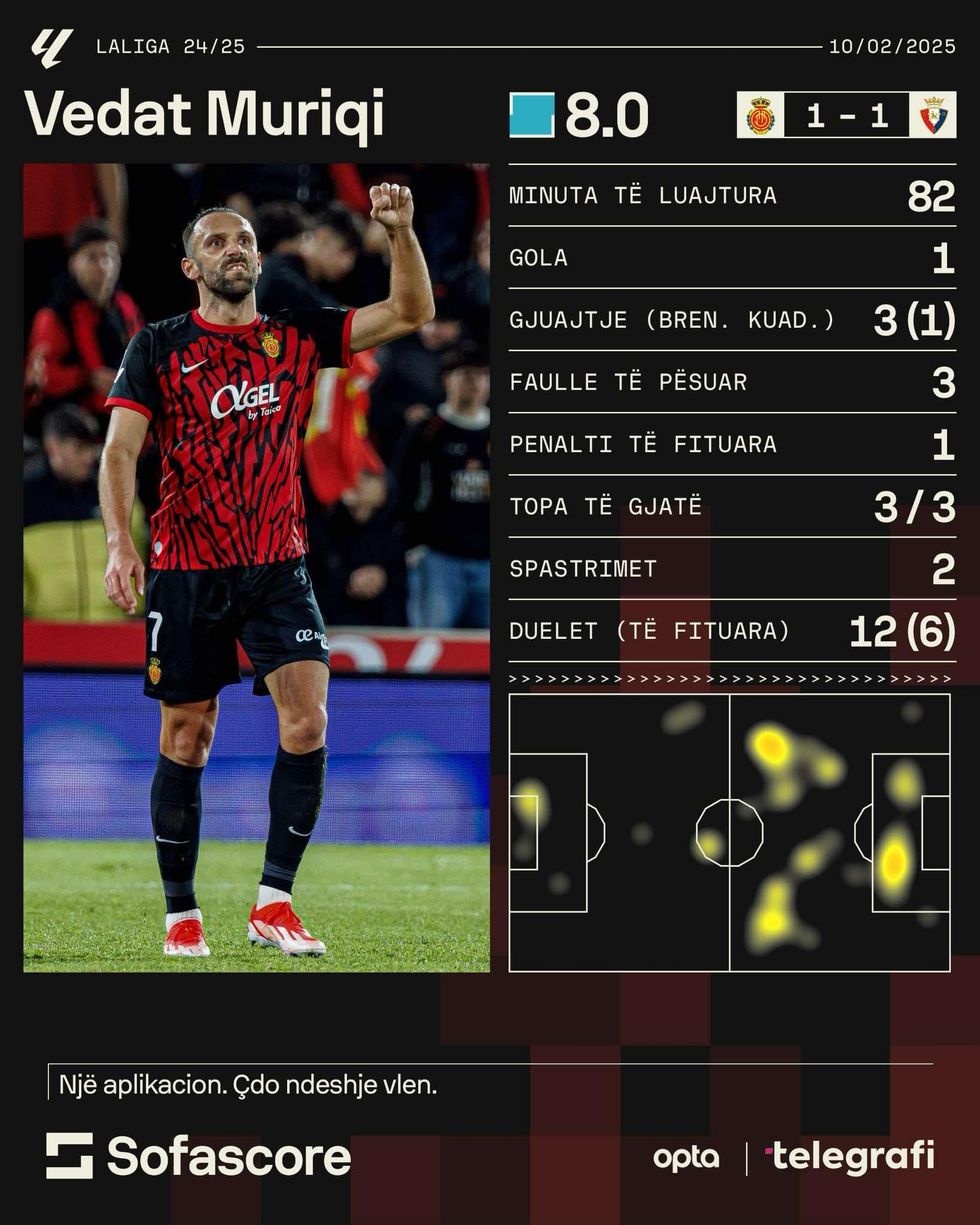 Vedat Muriqi i kthehet golave, por nuk i mjaftoi Mallorcas për fitore - sulmuesi prej më të mirëve në fushë