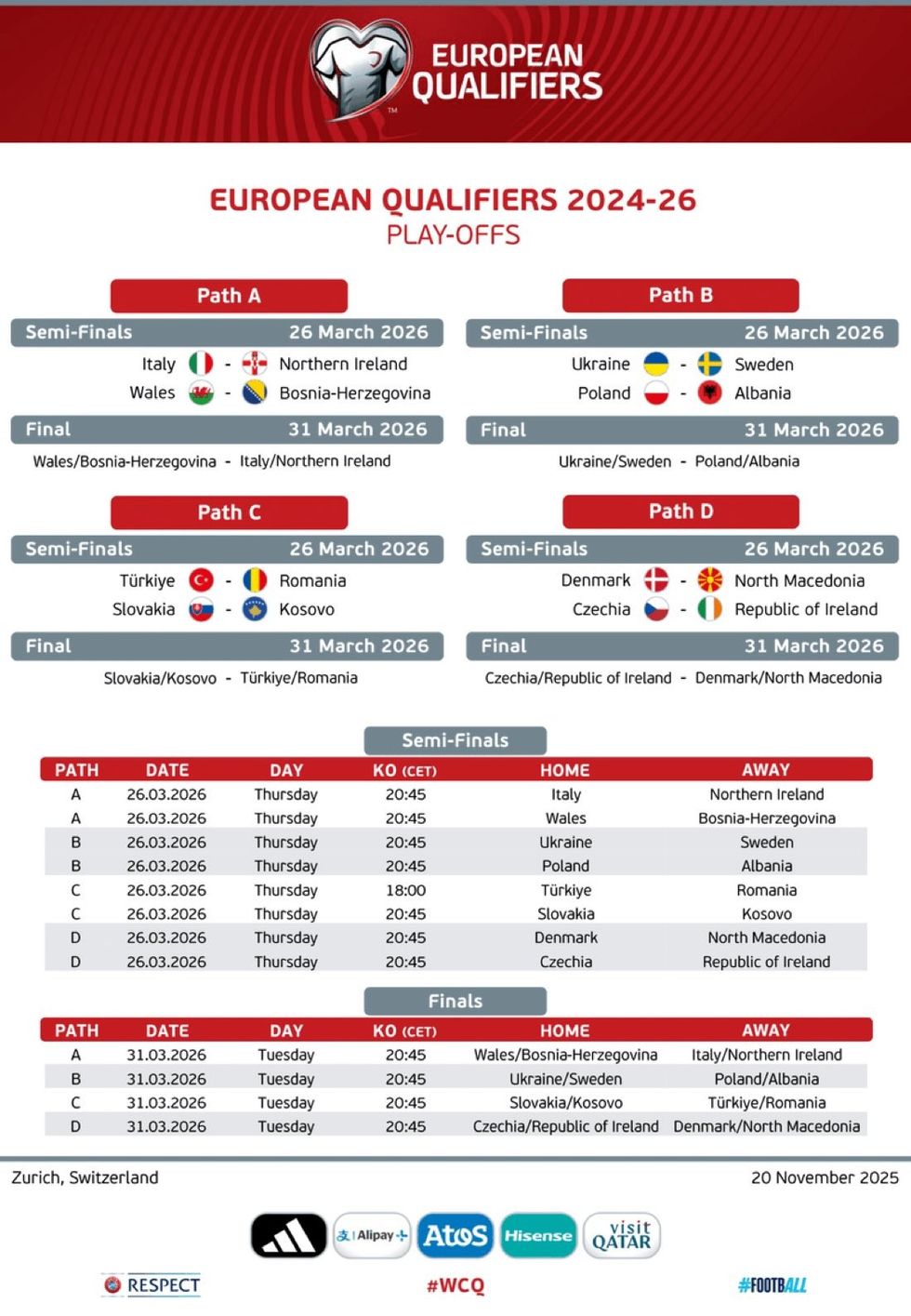 Kujtojmë, nëse Kosova shkon në finale atëherë do ta presë Turqinë ose Rumaninë në Prishtinë, ndërsa Shqipëria do të jetë sërish mysafir./Telegrafi/