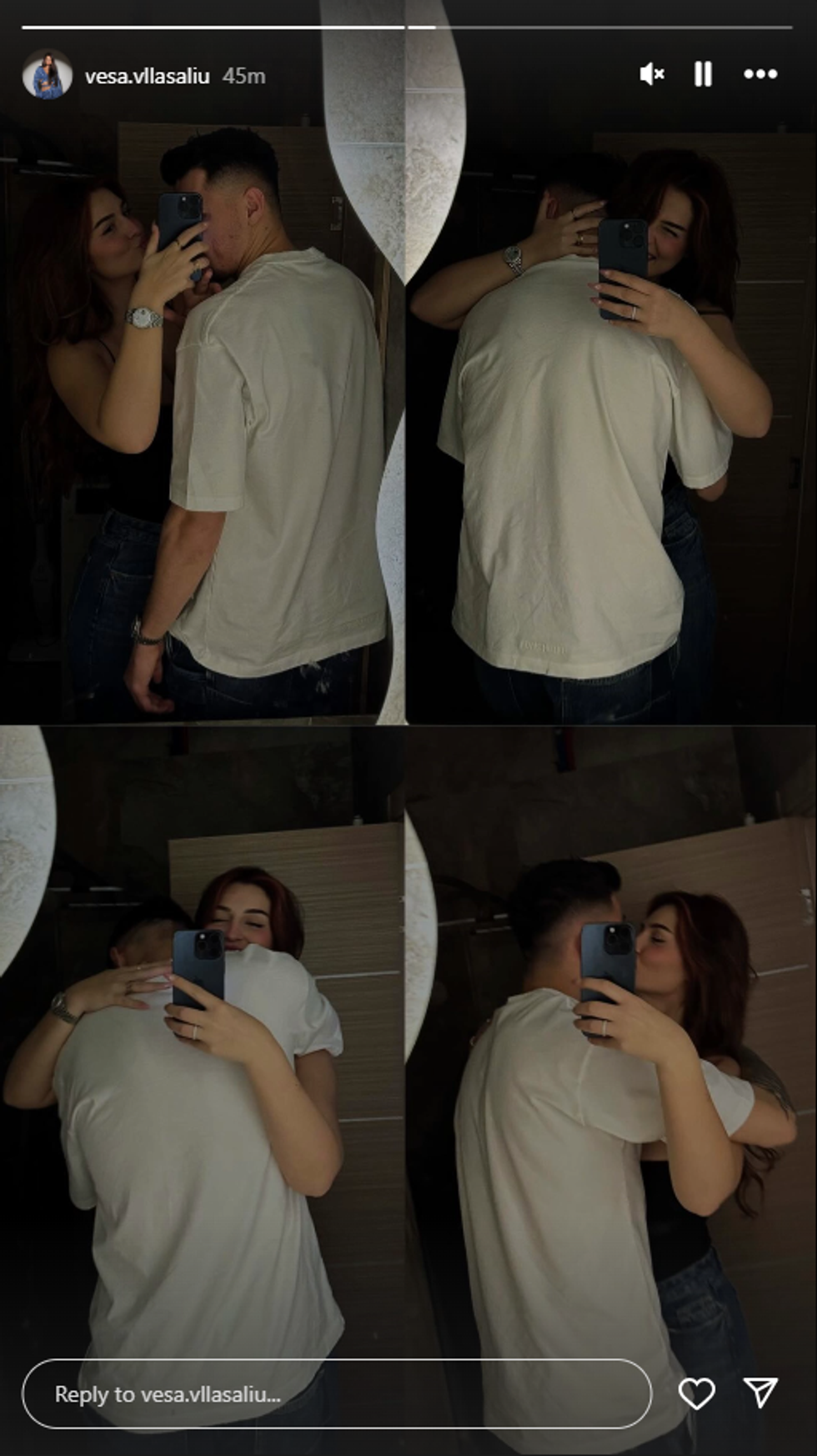 Në njërën prej fotove, ajo shfaqet duke e puthur të dashurin, ndonëse ka zgjedhur të mos e zbulojë plotësisht portretin e tij, duke ruajtur disi privatësinë e lidhjes.