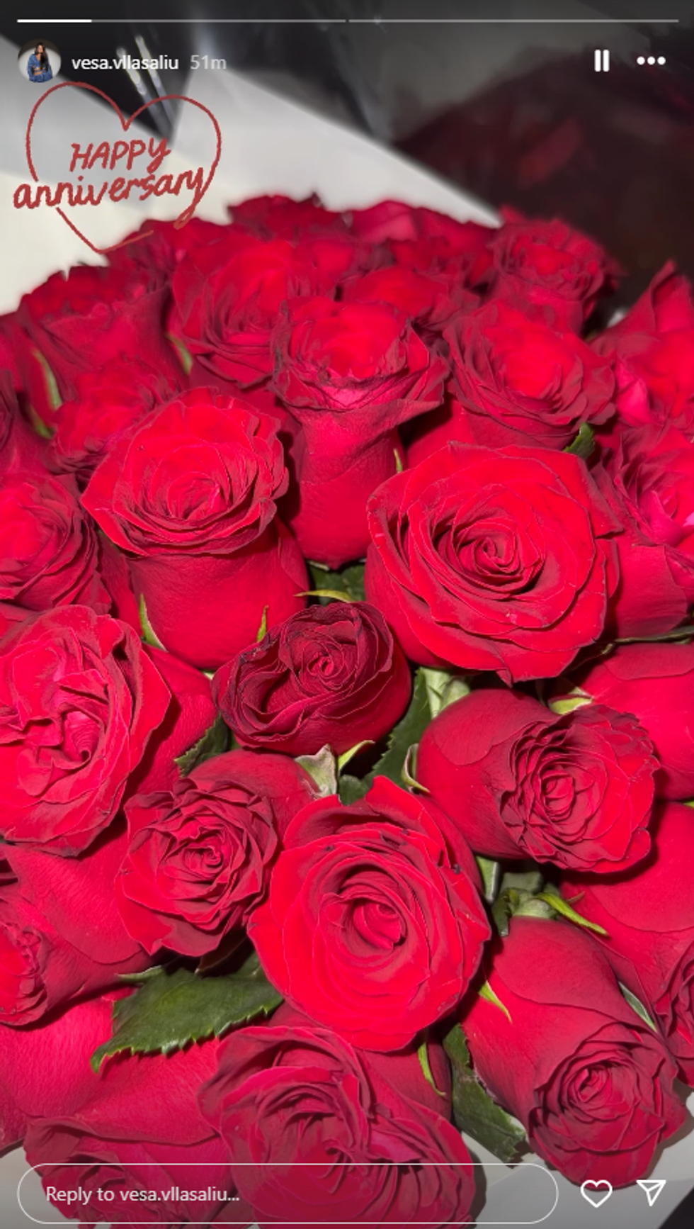 Postimet e saj sugjerojnë se çifti po feston një moment të rëndësishëm në marrëdhënien e tyre – me shumë gjasë përvjetorin e lidhjes – duke qenë se paraprakisht ajo ndau në Instagram edhe një dhuratë në formën e një buqete me lule.