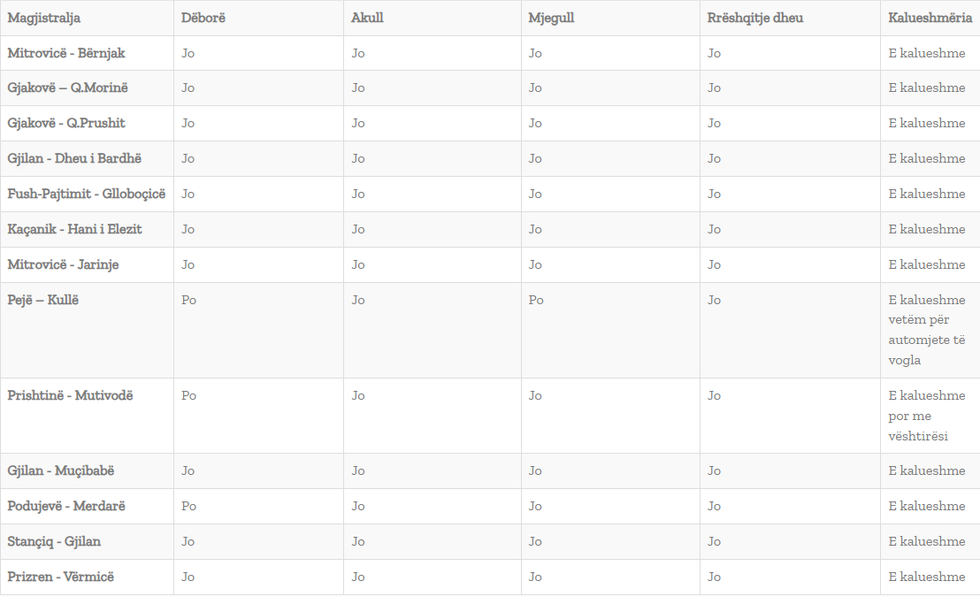 Ndërkohë, në aksin Prishtinë–Mutivodë, rruga mbetet e kalueshme, por me vështirësi të mëdha.