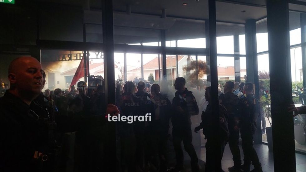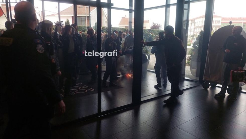 Njësia Speciale gjatë kësaj proteste kishte blinduar hyrjen ku është paralajmëruar takimi i Trendafilovas, ndërsa protestuesit brohoritnin "UÇK", UÇK.