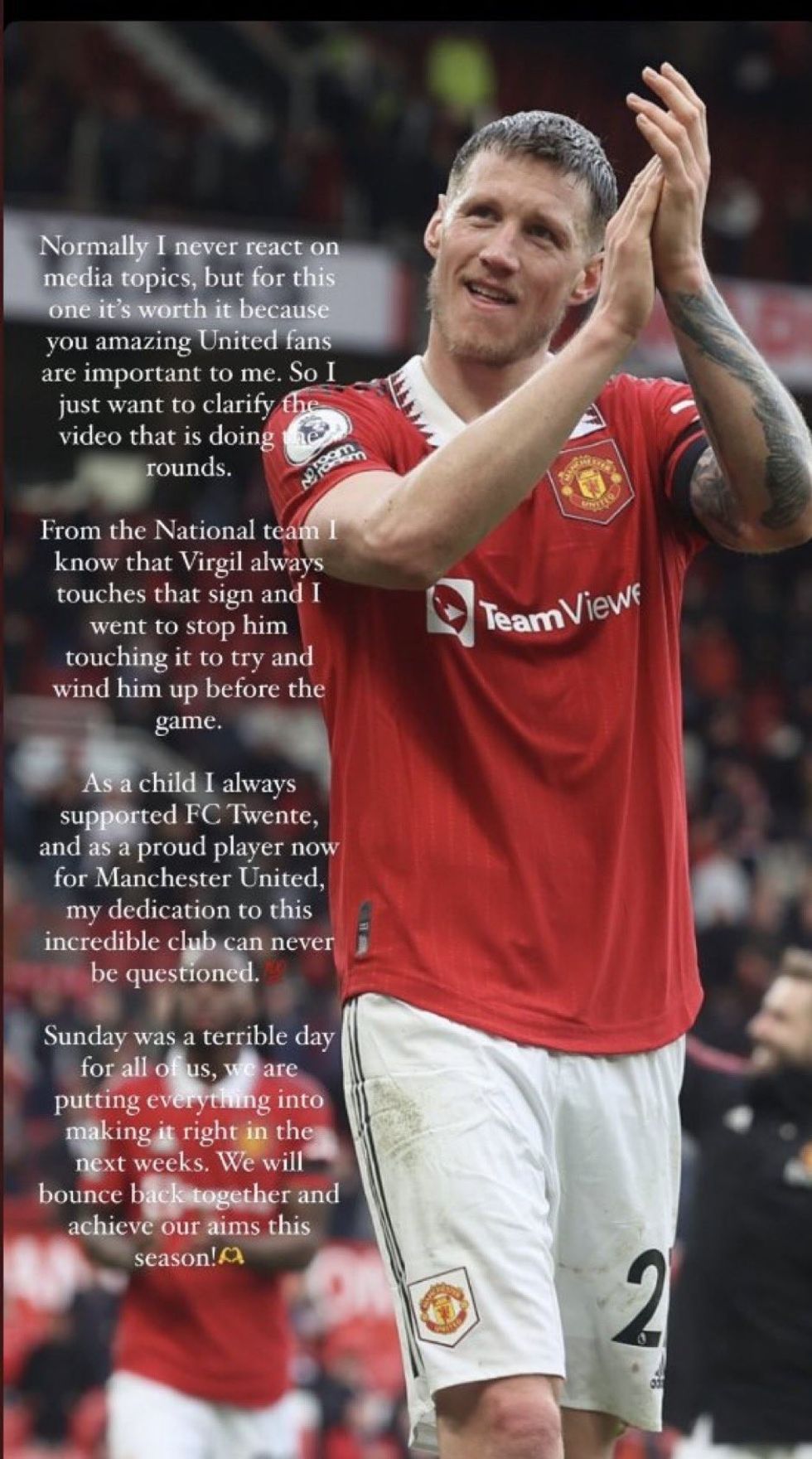 “Nga kombëtarja e di që Virgil gjithmonë e prek atë shenjë. E bëra për ta ndalur, për t’i prishur ritualin. Ishte vetëm një lojë psikologjike”, shkroi Weghorst në rrjetet sociale.
