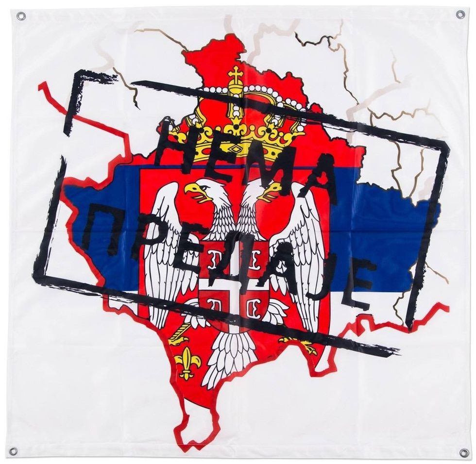 Flamuri përmban një mesazh politik dhe simbolik që lidhet me çështjen e Kosovës dhe Serbisë.