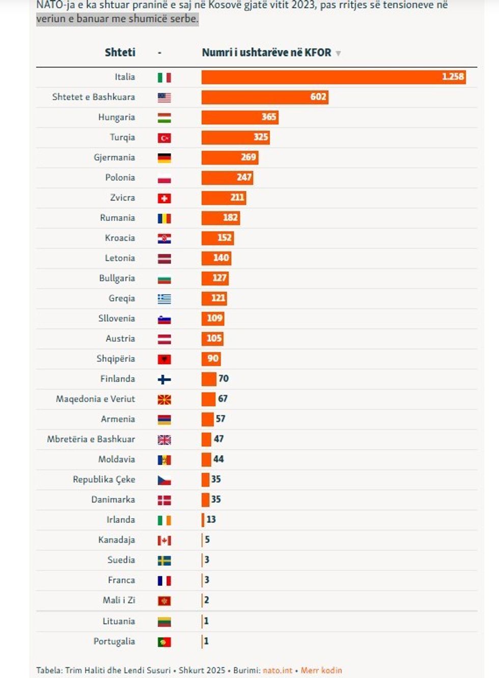 Sa trupa i ka NATO-ja në Kosovë?